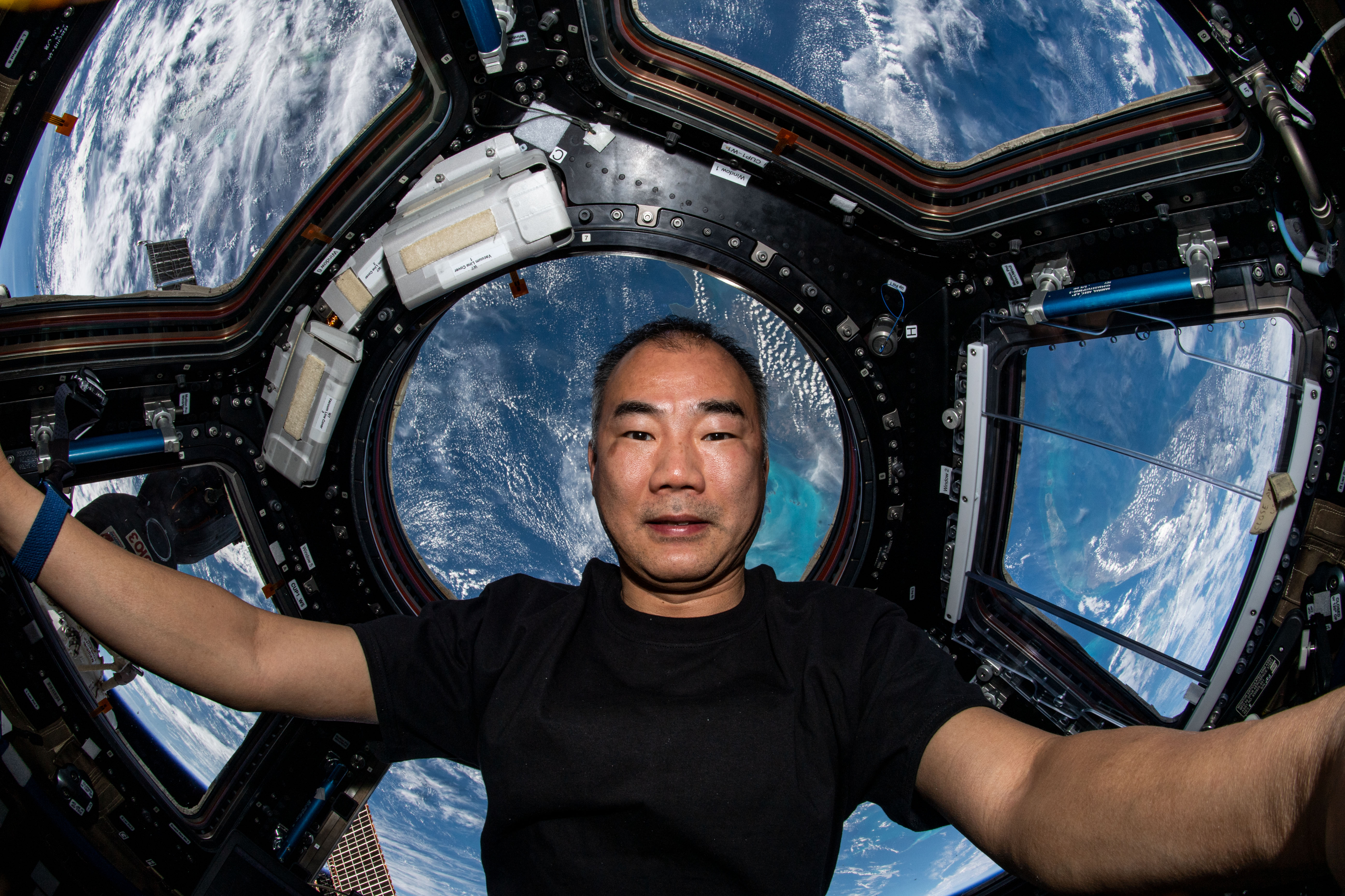 JAXA (Japan Aerospace Exploration Agency) astronaut and Expedition 64 Flight Engineer Soichi Noguchi is seen in the cupola of the International Space Station, with the Gulf of Mexico in the background.