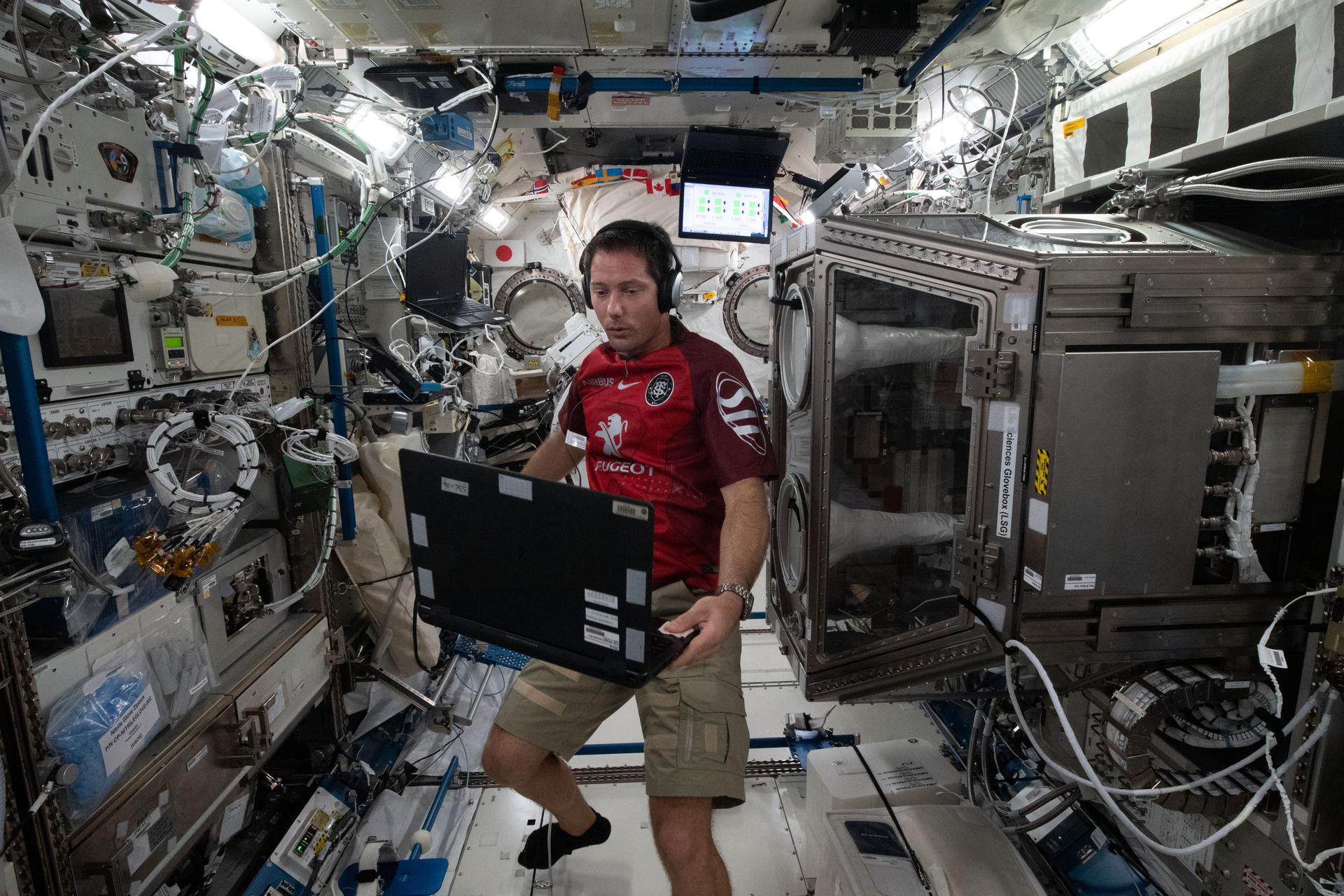 iss065e059603 (May 22, 2021) --- Expedition 65 Flight Engineer Thomas Pesquet of ESA (European Space Agency) is pictured working inside the Kibo laboratory module.