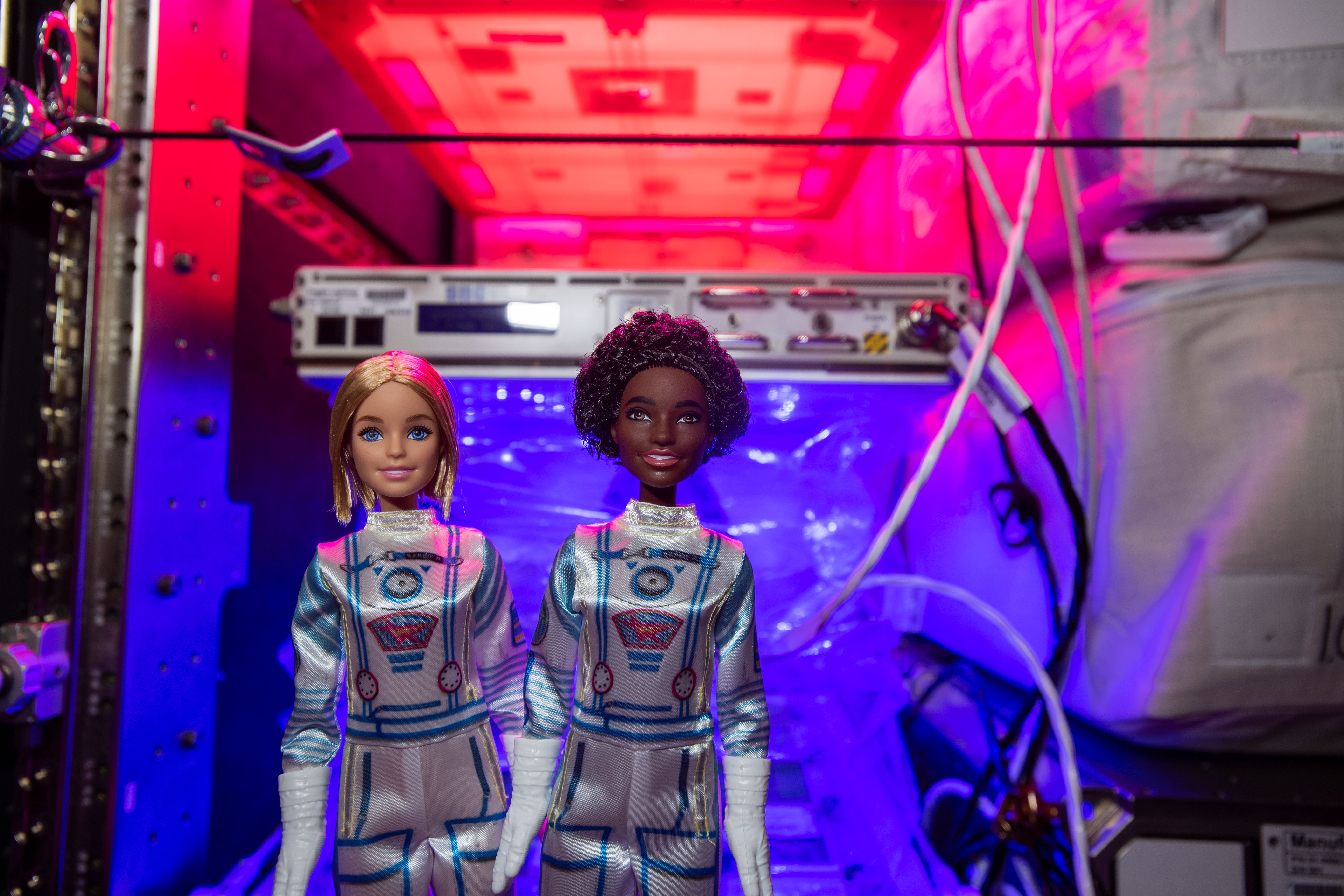 iss066e155892 (3/1/2022) --- DreamStar dolls float in front of Astrobee and Minus Eighty Laboratory Freezer for ISS (MELFI) aboard the International Space Station. The DreamStar science, technology, engineering, and mathematics (STEM) education project creates videos and educational materials highlighting women in space and reinforcing the message, “if you can see it, you can be it.”