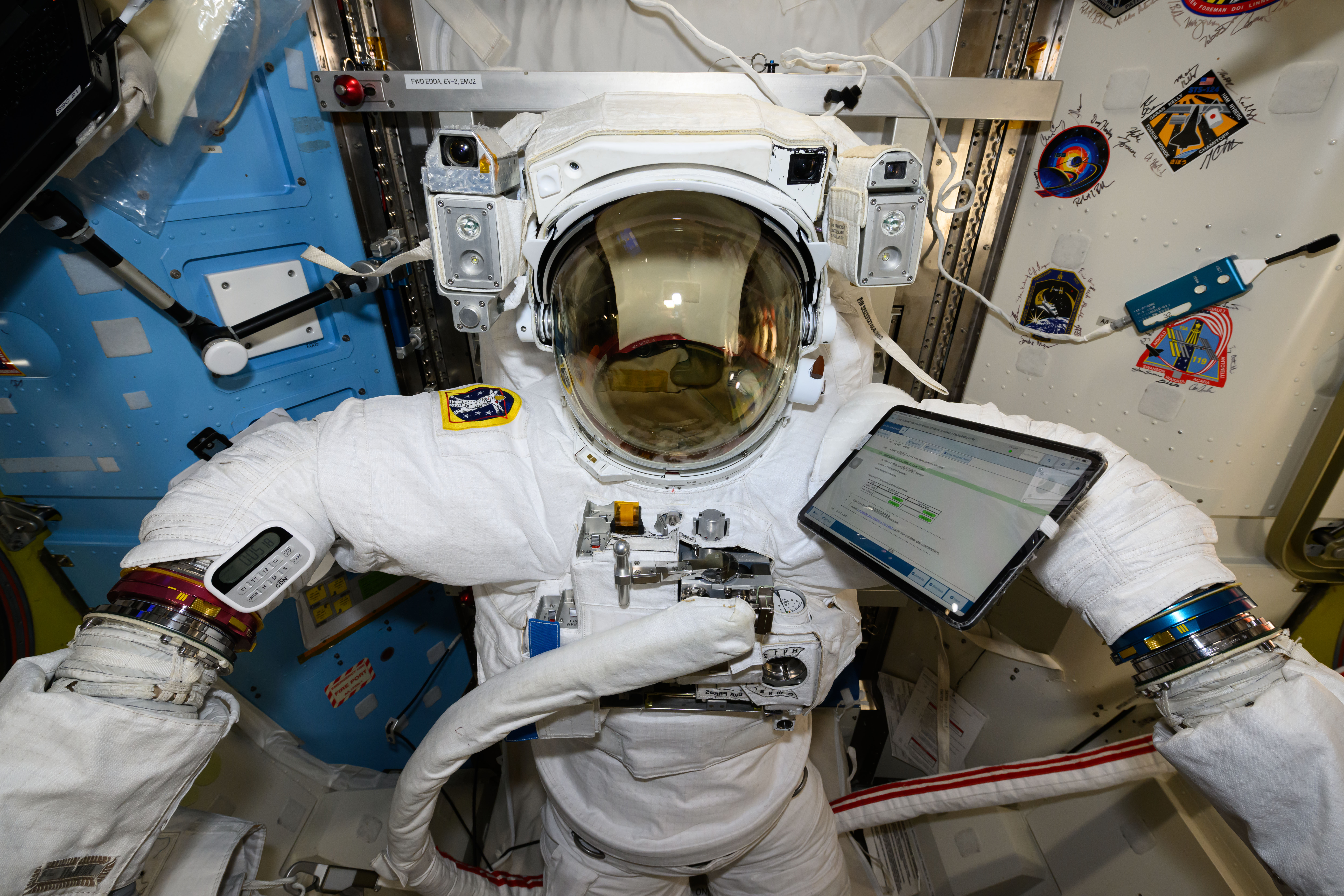 iss072e363875 (Dec. 9, 2024) ---A U.S. spacesuit is pictured being serviced for maintenance inside the International Space Station's Quest airlock.