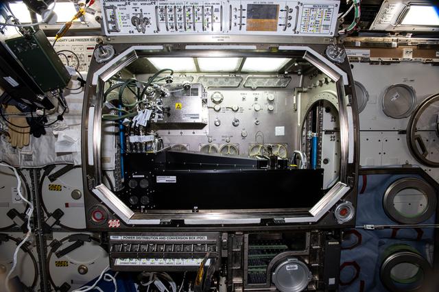 iss073e0002997 (4/28/2025) --- A view of the Colloidal Solids investigation inside the Microgravity Sciences Glovebox (MSG). Colloidal Solids (COLIS) provides researchers with a better understanding of the origin, formation, and dynamics of protein crystals and colloidal glasses and gels. COLIS is a state-of-the-art multi-line light scattering apparatus that enables the research team to monitor the dynamics of physical processes, during and after solidification, of soft matter solids on the International Space Station (ISS) to assess the role played by gravity on the properties of growing structures.
