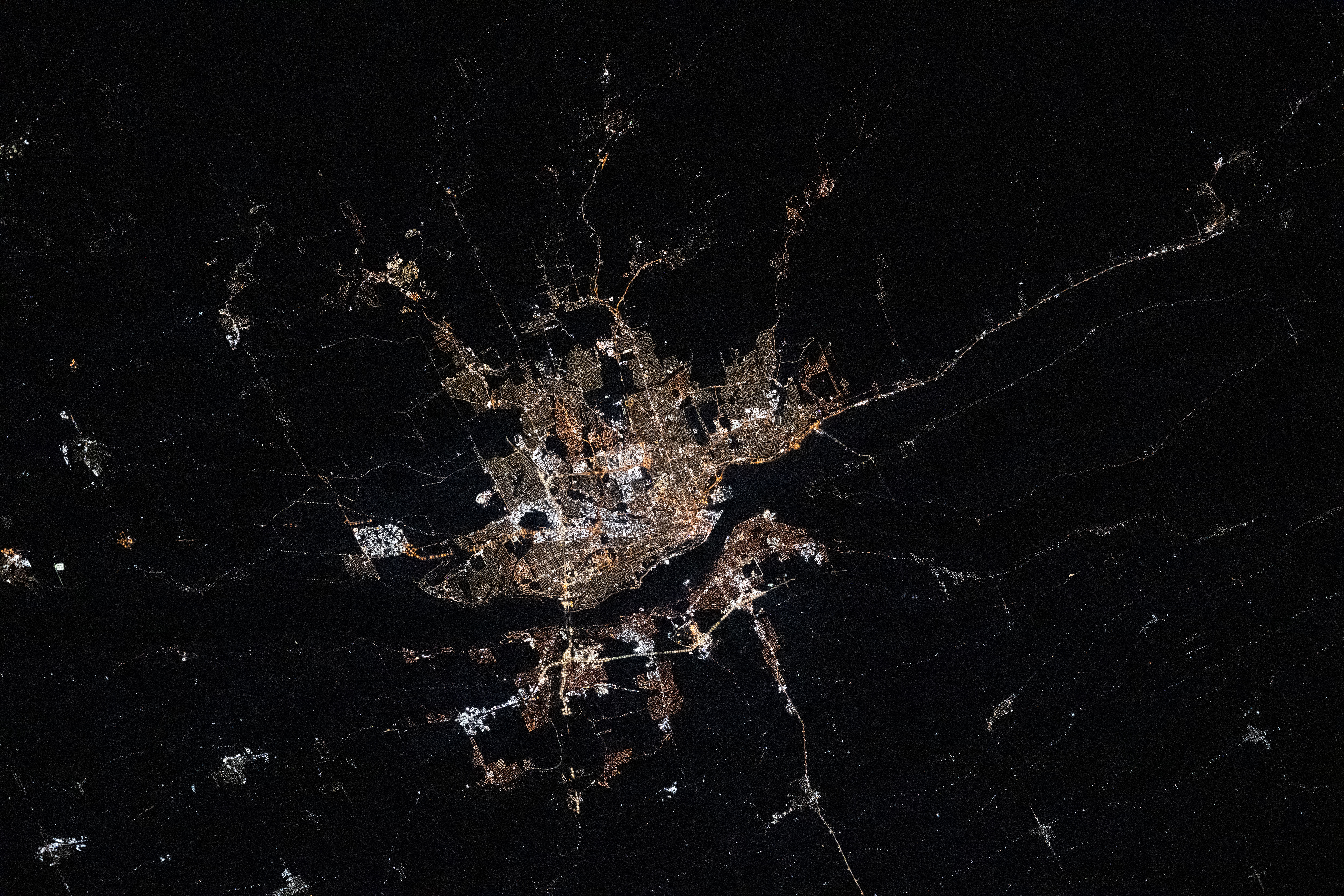 iss074e0334334 (Feb. 27, 2026) --- Quebec City, one of North America’s oldest cities at more than 400 years old, sits on the St. Lawrence River in Canada’s province of Quebec. This photograph was taken at approximately 1:21 a.m. local time from the International Space Station as it orbited 264 miles above North America. Credit: NASA/Chris Williams