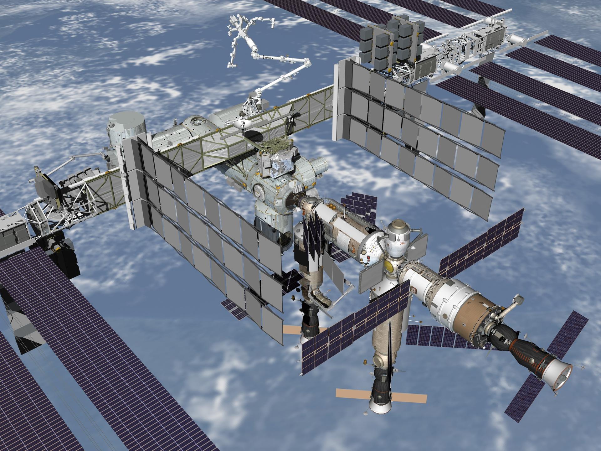 JSC2006-E-25652 (October 2006) --- Computer-generated scene showing a high-angle close view (port-aft) of the International Space Station, after assembly work is completed.