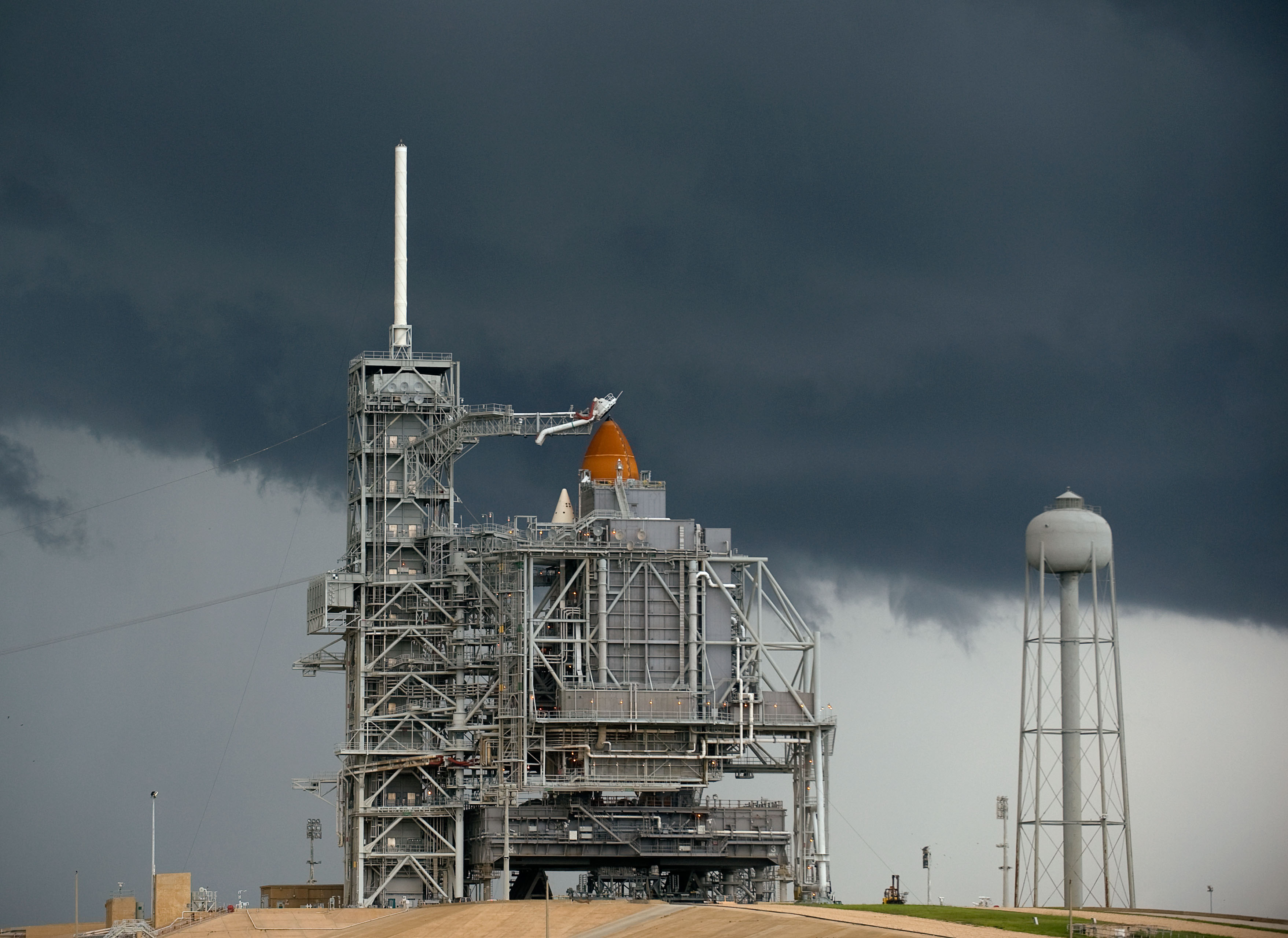 Storm clouds approach Launch Pad 39A at NASA's Kennedy Space Center in Florida on Friday, July 10, 2009 as space shuttle Endeavour stands awaiting Saturday's planned launch of the STS-127 mission. Photo Credit: (NASA/Bill Ingalls)