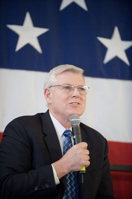 JSC2010-E-025784 (22 Feb. 2010) --- NASA's Johnson Space Center (JSC) director Michael L. Coats addresses a large crowd of well-wishers at the STS-130 crew return ceremony on Feb. 22, 2010 at Ellington Field near JSC.
