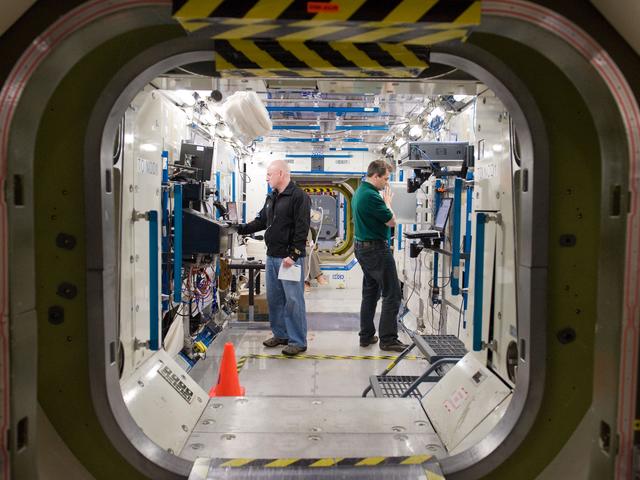 PHOTO DATE: 04-23-10 LOCATION: Bldg 9NW, ISS Mockup SUBJECT: Expedition 25 crew members, Kaleri, Skripochka and S. Kelly during routine ops training. PHOTOGRAPHER: James Blair