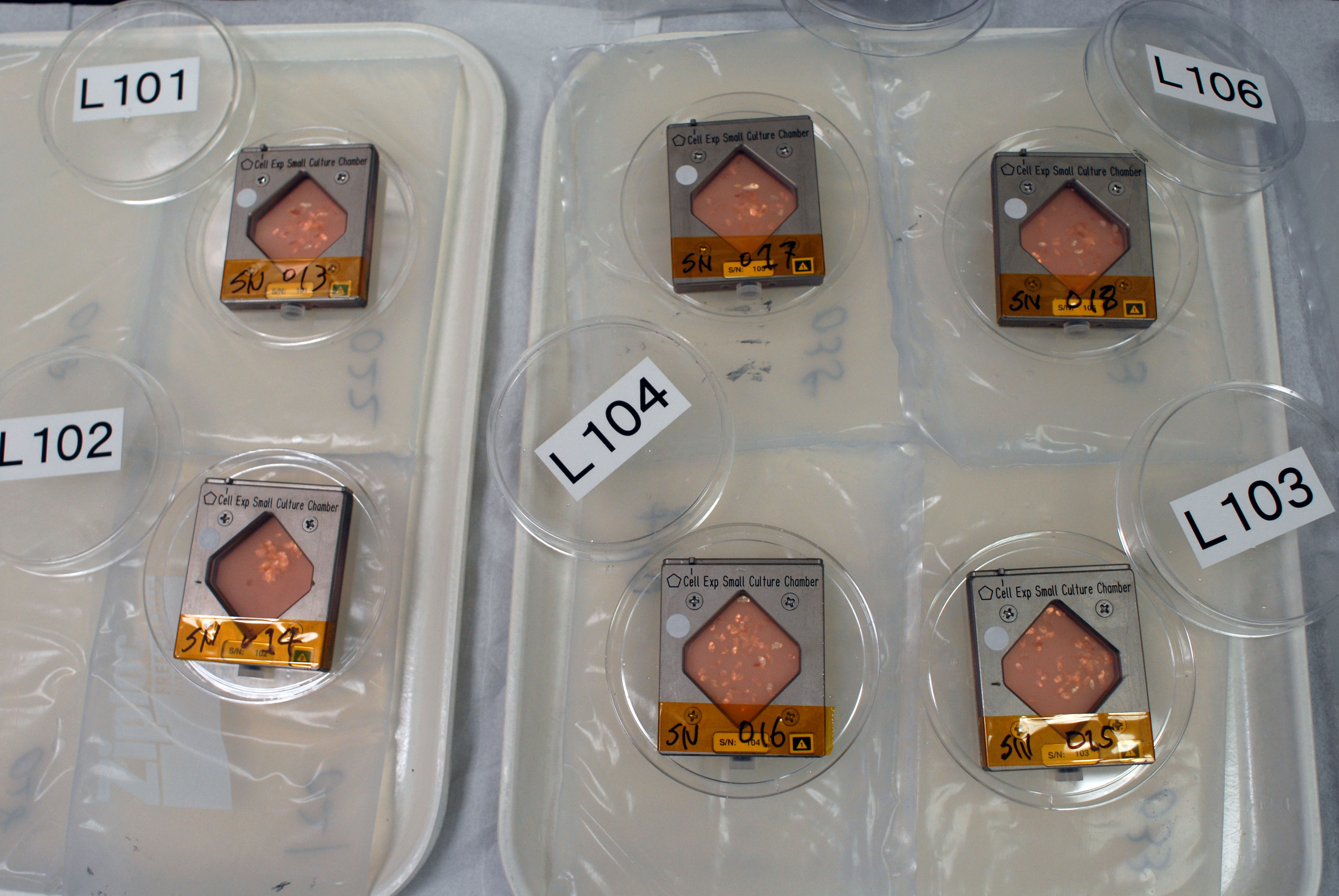 jsc2010e080368 (5/12/2010) --- A preflight image of the Fish Scales Culture Chambers with samples inside. The Osteoclastic and Osteoblastic Responses to Microgravity Using Goldfish Scales (Fish Scales) investigation will examine regenerating scales collected from anesthetized goldfish in microgravity, the results will be compared with ground controls.