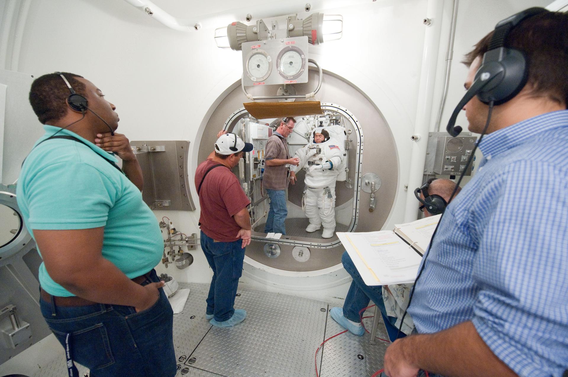 PHOTO DATE: 31 August 2011 LOCATION: Bldg. 7, SSATA Chamber SUBJECT: Expedition 32 crew member and JAXA astronaut, Akihiko Hoshide in SSATA Chamber during Dry Run. STB-ST-942. PHOTOGRAPHER: Mark Sowa