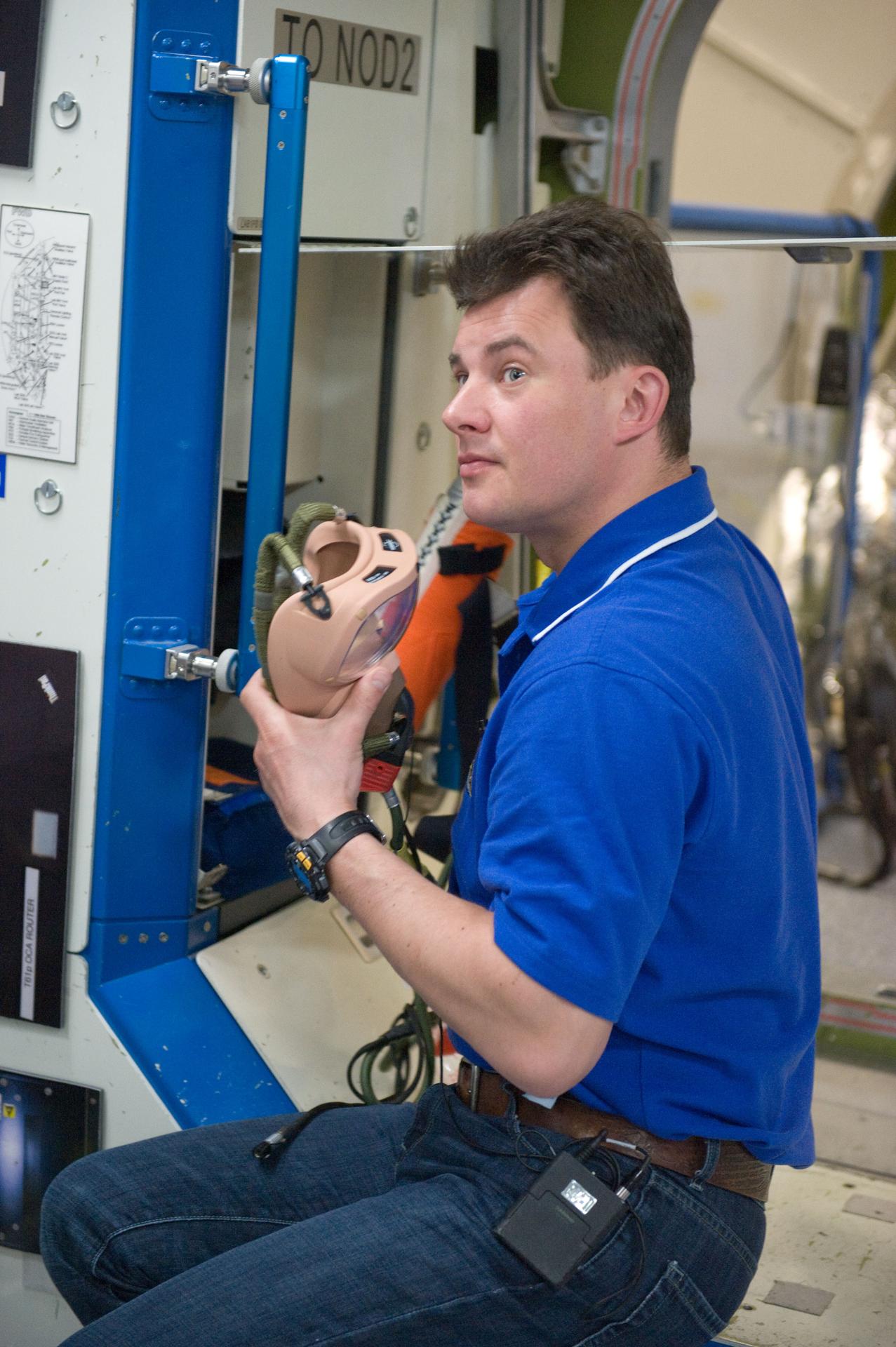 DATE: 3-22-12 LOCATION: Bldg. 9NW - ISS Mockups SUBJECT: Expedition 34 crew Chris Hadfield, Roman Romanenko and Tom Marshburn during emergency scenarios training in the ISS mockups with instructor Kathryn Bolt PHOTOGRAPHER: Lauren Harnett