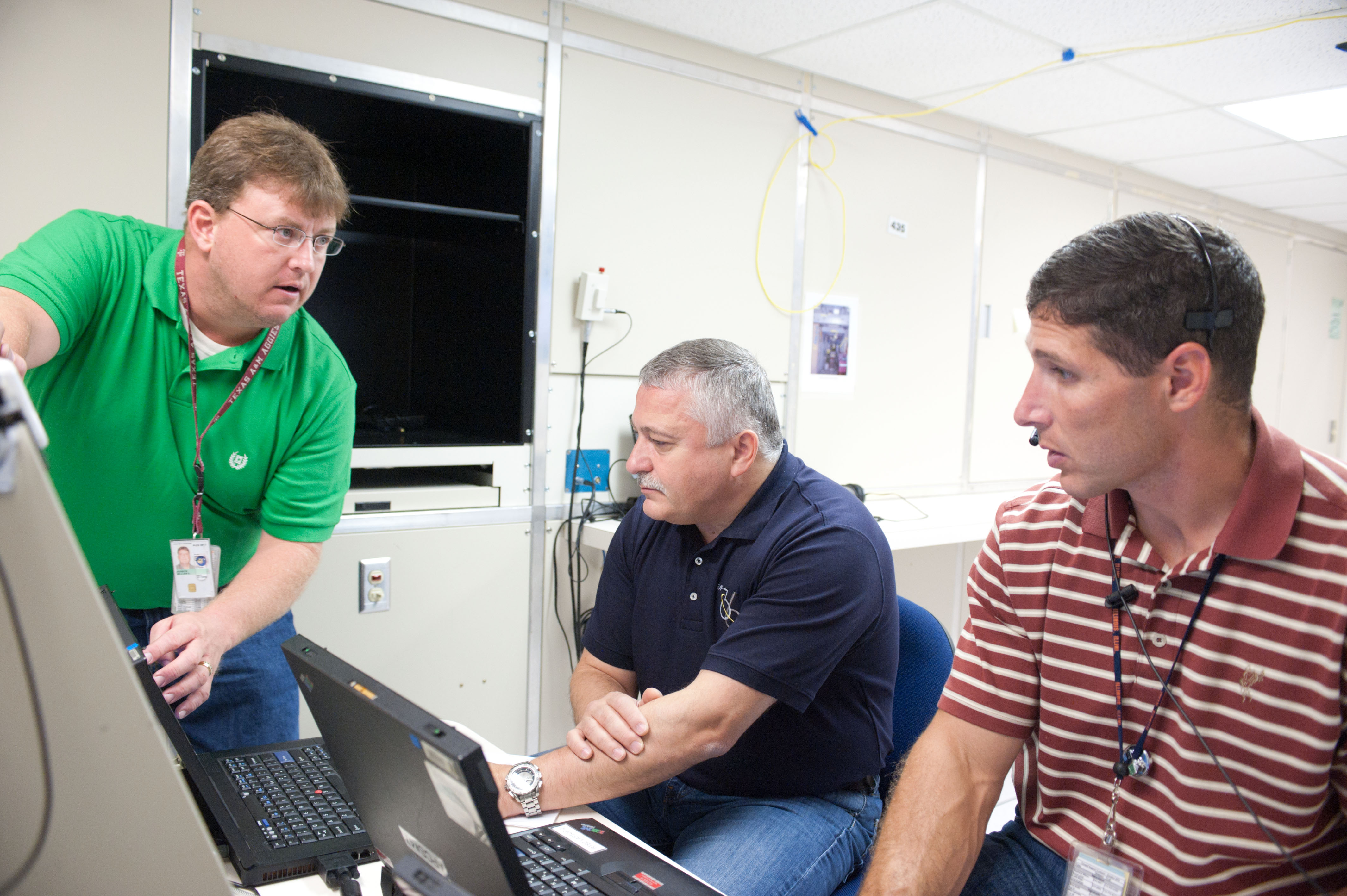 DATE: 9-11-12 LOCATION: Bldg. 5 - SSTF High Bay SUBJECT: Expedition 36/37 crew (Yurchikhin, Nyberg and Parmitano) along with Exp. 37/38’s Michael Hopkins during EPS Major Case Training. PHOTOGRAPHER: Lauren Harnett