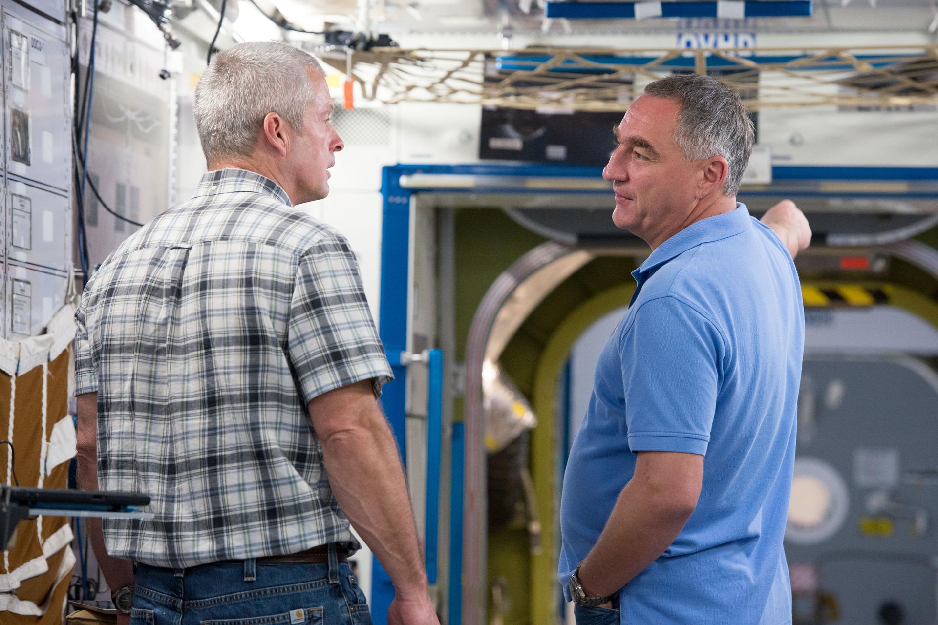 PHOTO DATE: 29 April 2013 LOCATION: Bldg. 9NW, Space Vehicle Mockup Training Facility - ISS Mockups SUBJECT: Expedition 39/40 (Soyuz 38) crew members, Steve Swanson, Alexander Skvortsov and Oleg Artemiev during Routine Ops sim in the ISS mockups at the Johnson Space Center.