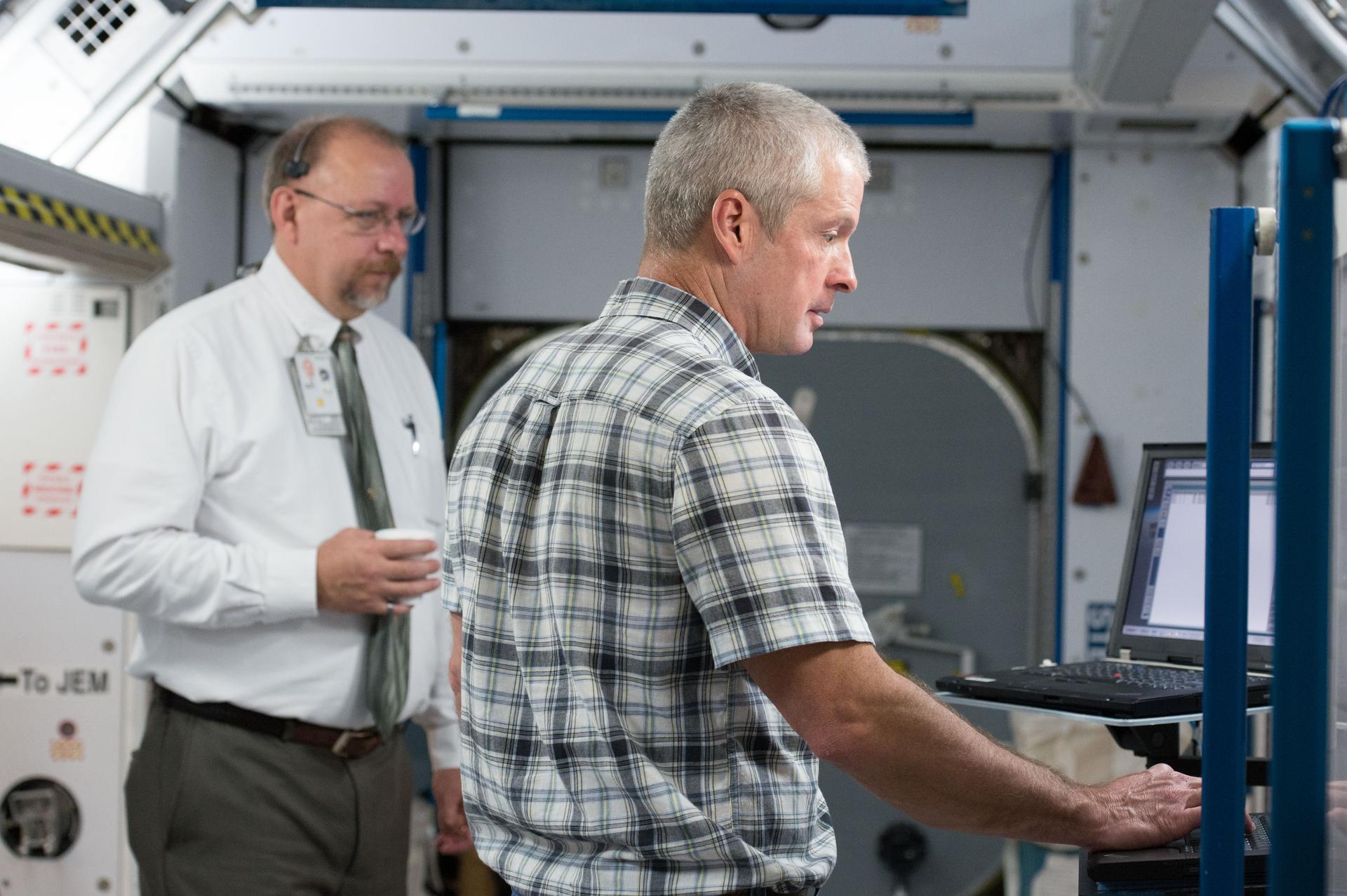 PHOTO DATE: 29 April 2013 LOCATION: Bldg. 9NW, Space Vehicle Mockup Training Facility - ISS Mockups SUBJECT: Expedition 39/40 (Soyuz 38) crew members, Steve Swanson, Alexander Skvortsov and Oleg Artemiev during Routine Ops sim in the ISS mockups at the Johnson Space Center.