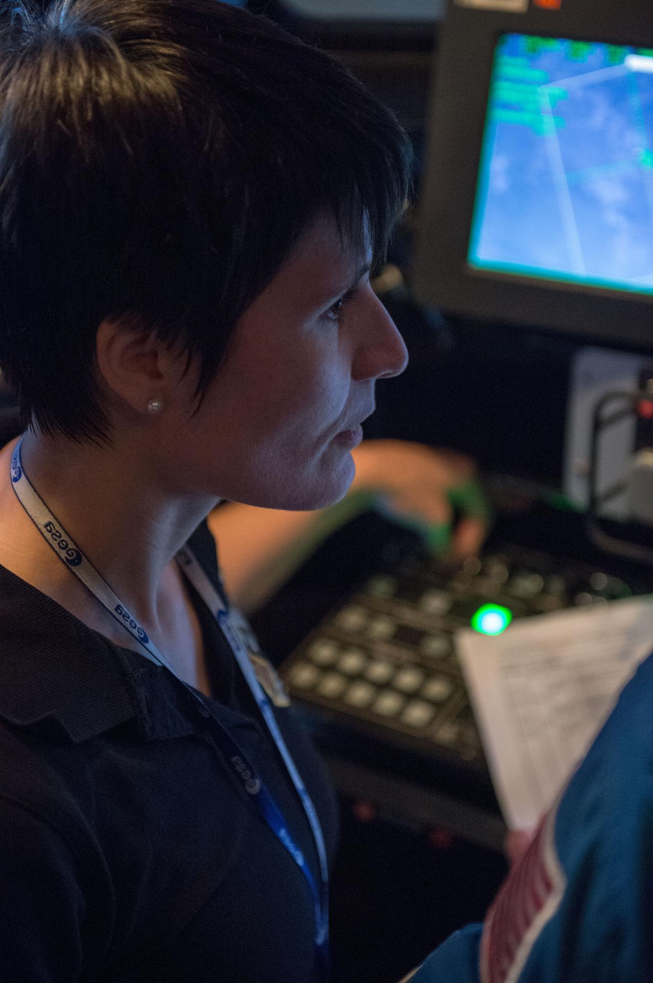DATE: 10-25-13 LOCATION: Bldg 16, Rm 1040 SUBJECT: Expedition 42/43 crew members Samantha Cristoforetti, Barry Wilmore, Terry Virts during FF T&C/R Mini Sim 1 in the SES Alpha Cupola trainer. PHOTOGRAPHER: Lauren Harnett
