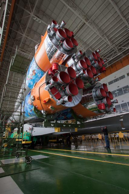 12-19-33: Adorned with the artwork and the colors of the 2014 Winter Olympics to be held in Sochi, Russia, the Soyuz rocket that will launch Nov. 7, Kazakh time, to carry Expedition 38/39 Soyuz Commander Mikhail Tyurin, Flight Engineer Rick Mastracchio of NASA and Flight Engineer Koichi Wakata of the Japan Aerospace Exploration Agency into orbit is moved into position Nov. 3 for its rollout to the launch pad Nov. 5. The three crewmembers will be aboard the Soyuz TMA-11M spacecraft for the launch that will begin their six-month mission on the International Space Station. Launching with them to spend four days on the station is the Olympic torch that will light the flame at the Opening Ceremonies in Sochi Feb. 7, 2014 to begin the winter games. NASA/Victor Zelentsov