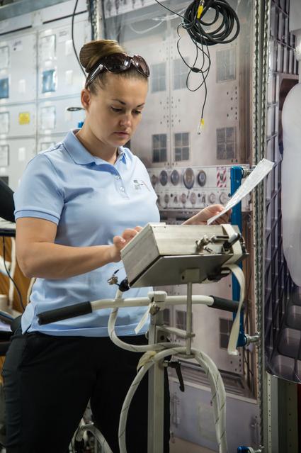 PHOTO DATE: 05-15-14 LOCATION: Bldg. 9NW - ISS Mockups SUBJECT: Expedition 42 crew members Butch Wilmore, Alexander Samokutyaev and Yelena Serova during Routine Ops training PHOTOGRAPHER: BILL STAFFORD