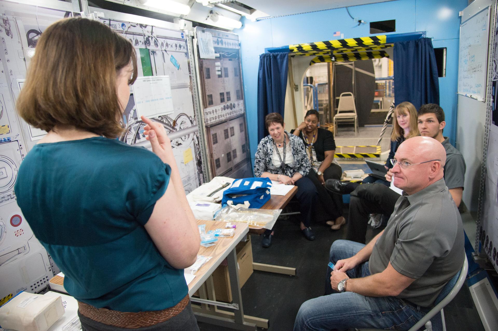 DATE: 6-9-14 LOCATION: Bldg. 9, PDL (Life Sciences) SUBJECT: Instructors and crewmember Scott Kelly during Biological Sampling training session. PHOTOGRAPHER: Lauren Harnett