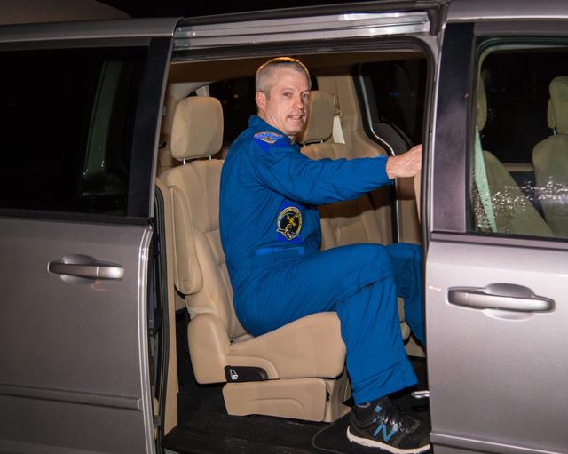Expedition 40 crew member Steve Swanson during his arrival at Ellington Field. Photo Date: September 11, 2014. Location: Ellington Field. Photographer: Robert Markowitz