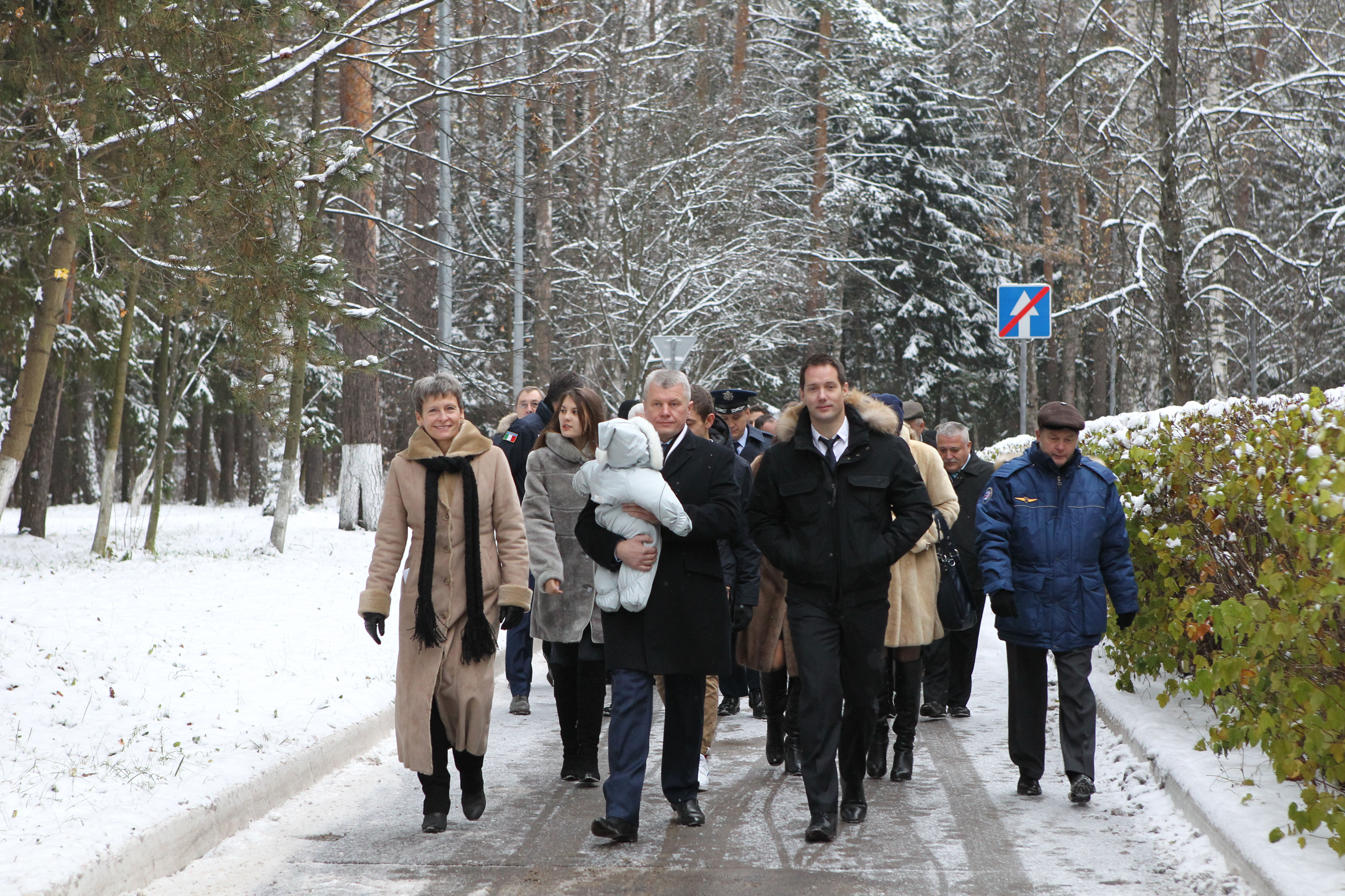 At the Gagarin Cosmonaut Training Center in Star City, Russia, Expedition 50-51 crewmembers Peggy Whitson of NASA (left), Oleg Novitskiy of the Russian Federal Space Agency (Roscosmos, center, holding his daughter) and Thomas Pesquet of the European Space Agency (right) walk to a bus Nov. 1 that will take them to their plane to fly to their launch site in Baikonur, Kazakhstan. The trio will launch Nov. 18, Baikonur time, on the Soyuz MS-03 spacecraft for a six-month mission on the International Space Station. NASA/Stephanie Stoll