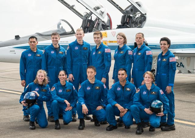 jsc2017e067268 (06/06/2017) --- New Astronaut Candidate's First Day at NASA's Ellington Field. NASA selected 12 new astronaut candidates, Kayla Barron, Zena Cardman, Raja Chari, Matthew Dominick, Robert Hines, Warren Hoburg, Jonathan Kim, Robb Kulin, Jasmin Moghbeli, Loral O’Hara, Francisco Rubio and Jessica Watkins at NASA’s Johnson Space Center in Houston, Texas. After completing two years of training, the new astronaut candidates could be assigned to missions performing research on the International Space Station, launching from American soil on spacecraft built by commercial companies, and launching on deep space missions on NASA’s new Orion spacecraft and Space Launch System rocket. Photo Credit: (NASA/James Blair)