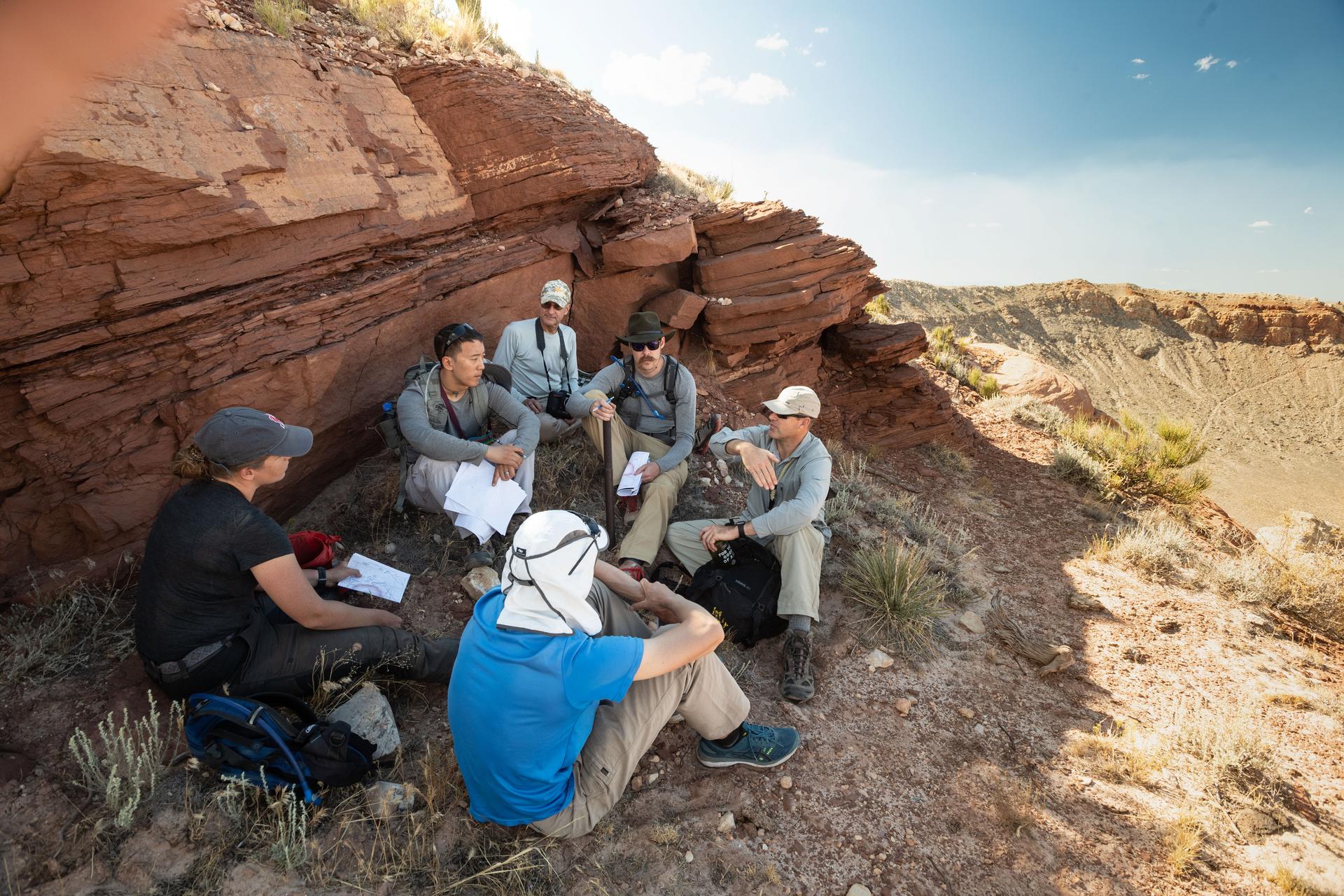 jsc2019e055491 (09-19-19) --- 2017 NASA astronaut candidates gather to discuss further instruction with their field instructor during geology training in Arizona. Photo Credit: (NASA/Bill Stafford)