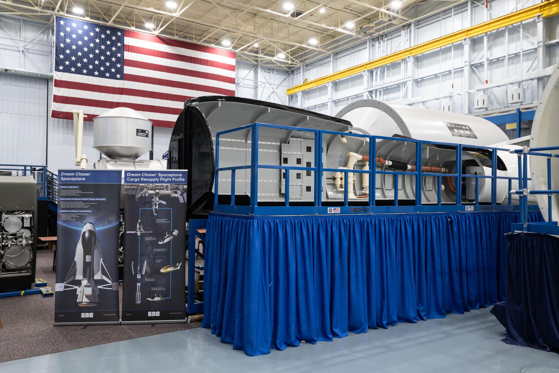 jsc2021e004389 (Jan. 21, 2021) --- External view of the Sierra Nevada Dream Chaser mockup located in Building 9N, Space Vehicle Mockup Facility (SVMF) at the NASA Johnson Space Center.