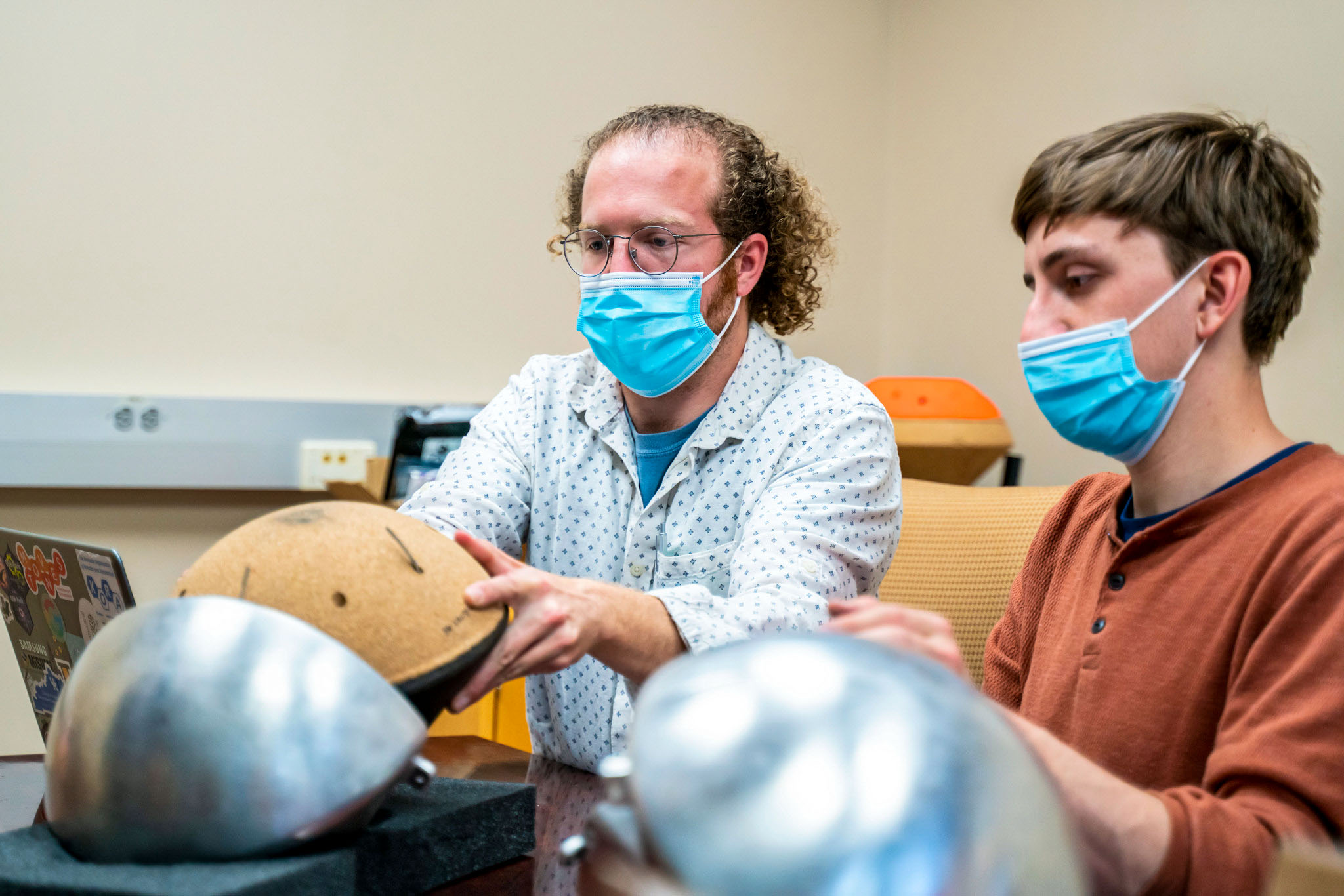 jsc2021e031159 (7/22/2021) --- John Schmidt, graduate student and mechanical engineering lead and Matthew Ruffner, graduate student and electrical engineering lead of KREPE. The Kentucky Re-Entry Probe Experiment (KREPE) demonstrates an affordable technology for re-entry experiments and provides flight data on Thermal Protection Systems (TPS) to help validate computational models. Photo courtesy of the University of Kentucky.