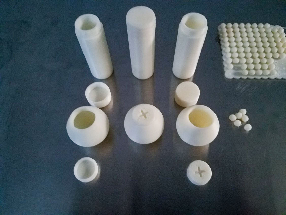 jsc2021e042554 (8/31/2021) --- Ground reference models of 3D-Printed items (shells and beads as granular filling material) as produced by the Additive Manufacturing Facility (AMF). The Granular Damping (ESA-EPO-Granular Damping) investigation studies the dynamics of granular matter (e.g. sand, corn, snow, rocks, dust or similar). Granular matter sediments on Earth, but can form a gas-like state of matter in space. Image courtesy of MadeInSpace.