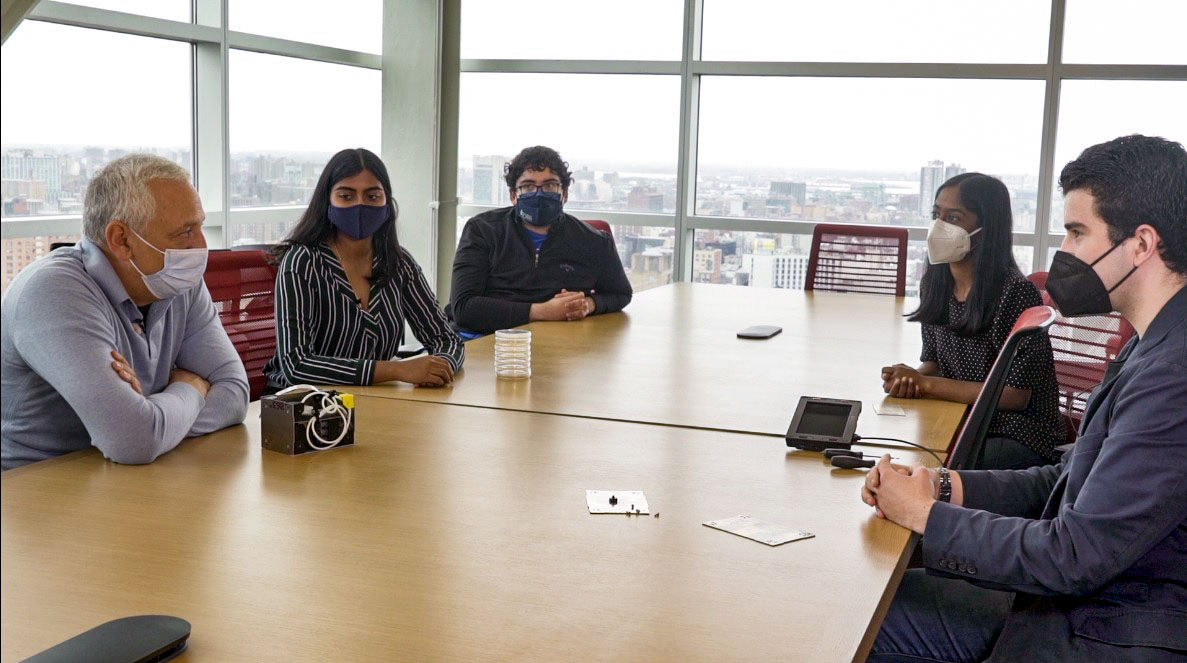 jsc2021e063275--Leadership team meets with Professor and Former Astronaut Michael Massimino Pictured from left to right: Michael Massimino, Swati Ravi, Hugo Favila, Kalpana Ganeshan, Alfonso Ussia