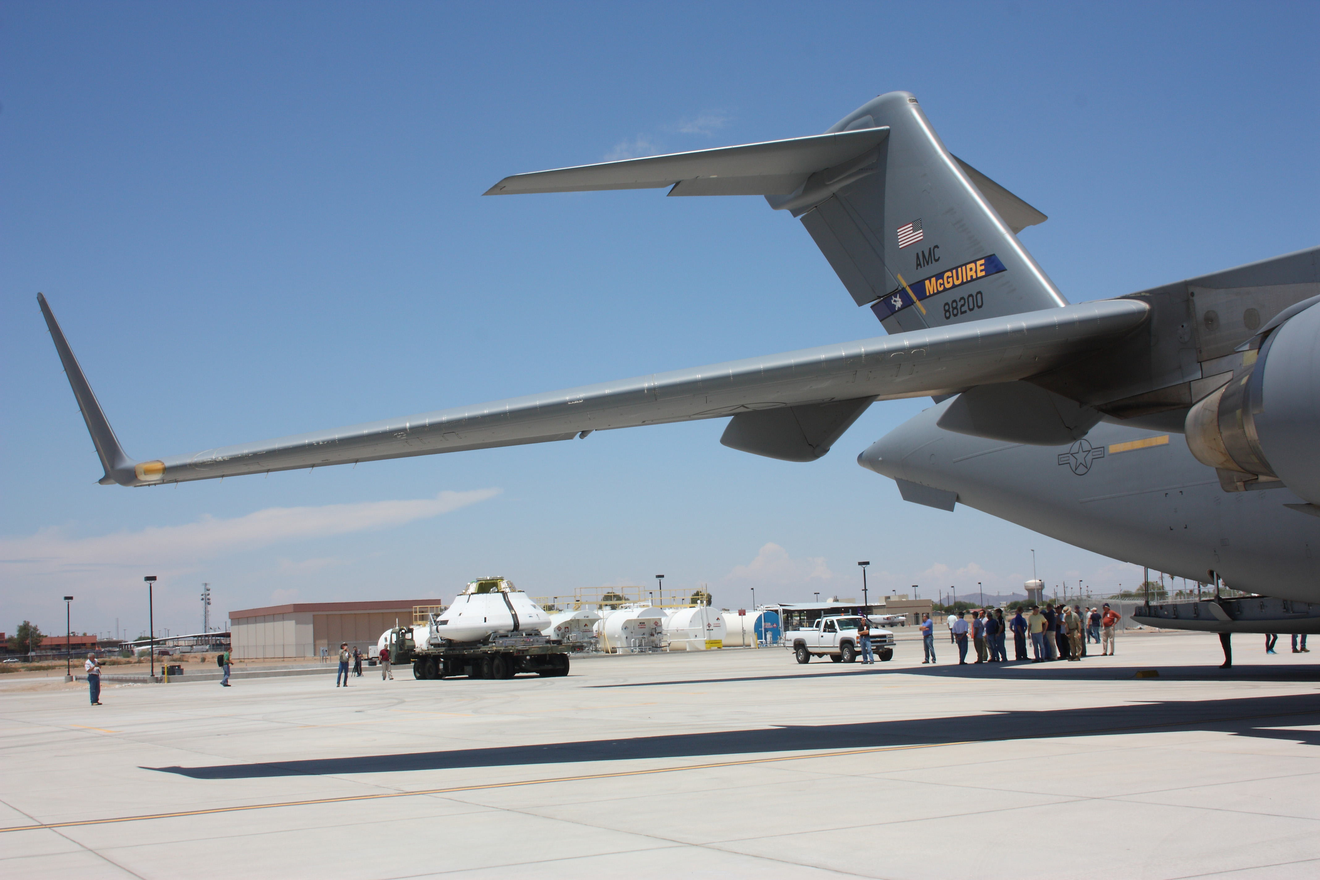 Teams peform Orion Parachute Test Vehicle (PTV) loading operations on July 22, 2013 in preparation for the July 24 parachute drop test at the U.S. Army Yuma Proving Ground in Arizona. Part of Batch image transfer from Flickr.