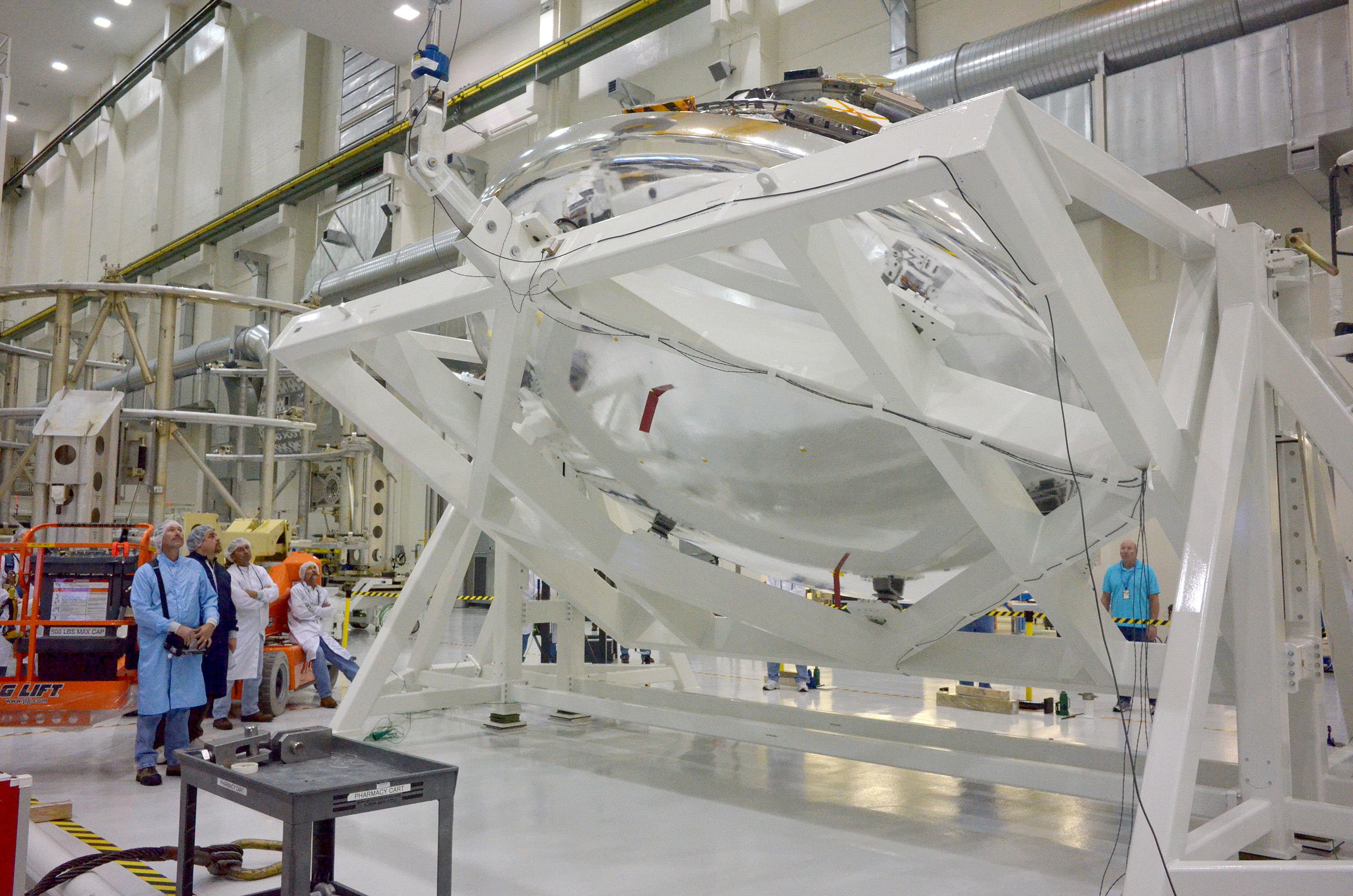 An Orion weight and center of gravity test with the Exploration Flight Test-1 (EFT-1) crew module takes place at the Operations and Checkout (O&C) Building at Kennedy Space Center on June 8, 2014. Part of Batch image transfer from Flickr.