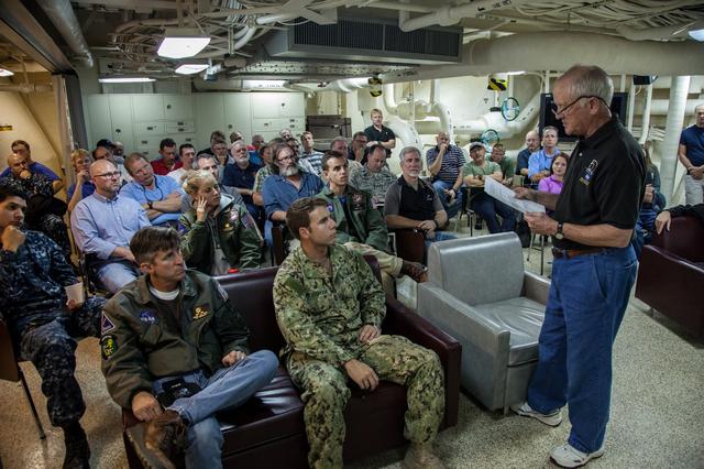 On Dec. 1, 2014, Milt Heflin briefs the Orion recovery team on board the U.S. Navy's USS Anchorage, which will be used to retrieve Orion after it splashes down in the Pacific Ocean following Exploration Flight Test-1 (EFT-1) on Dec. 4. Heflin began his 46-year-long NASA career as part of the team that recovered the Apollo capsules from the Pacific. Now retired from NASA, he is acting as a consultant for the Orion team through Red Canyon Software, Inc. Part of Batch image transfer from Flickr.