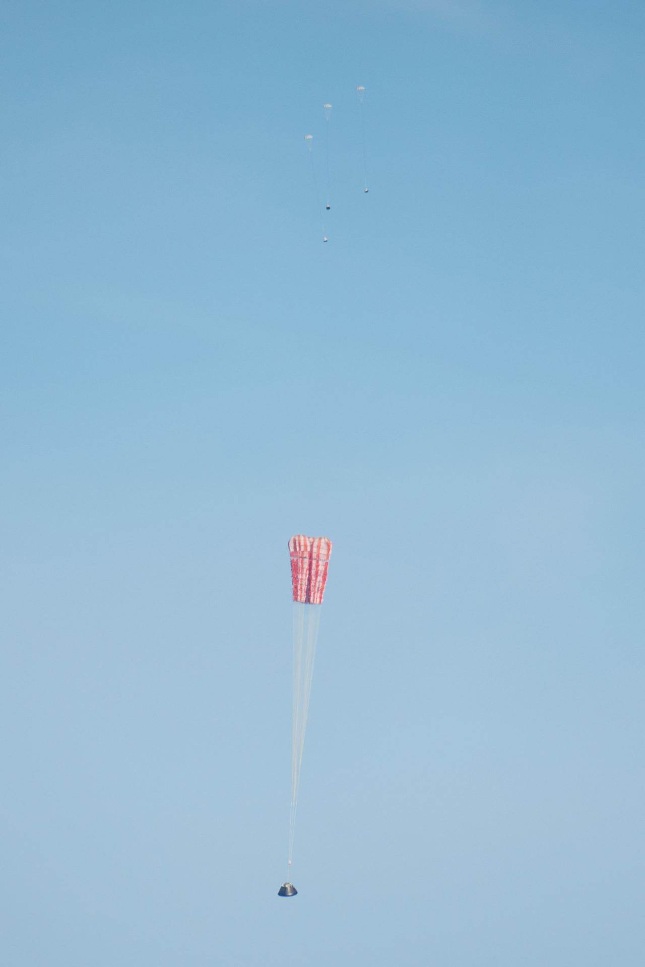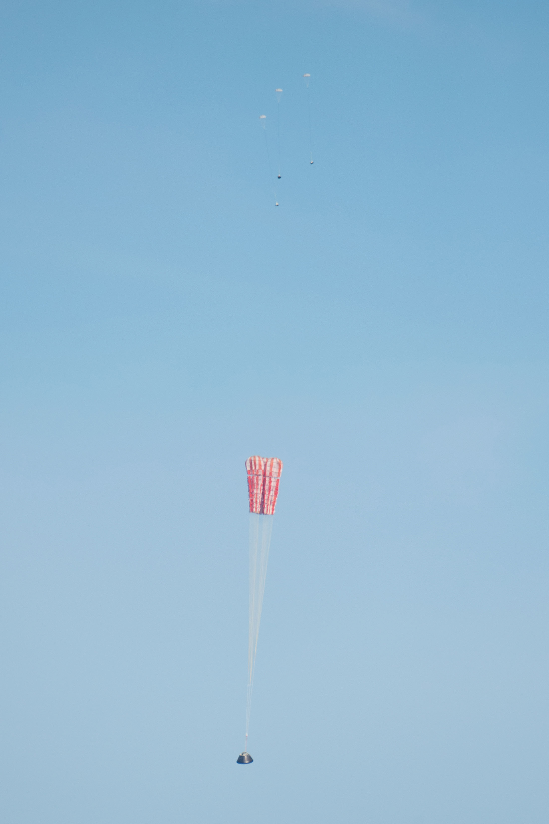 Orion's parachutes deploy as it returns to Earth after Exploration Flight Test-1 (EFT-1) on Dec. 5, 2014. Part of Batch image transfer from Flickr.