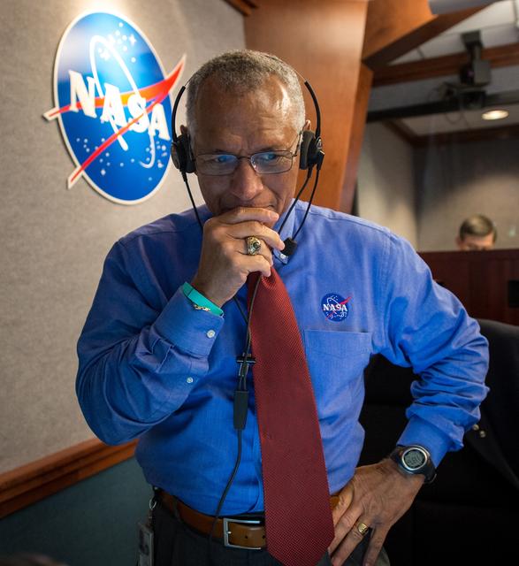 NASA Administrator Charles Bolden pauses for a moment in Building AE at Cape Canaveral Air Force Station after having watched and celebrated the Orion spacecraft splash down in the Pacific Ocean more than three hours after the spacecraft launched onboard a United Launch Alliance Delta IV Heavy rocket from Launch Complex 37, Friday, Dec. 5, 2014, Cape Canaveral, Florida. The Orion spacecraft orbited Earth twice, reaching an altitude of approximately 3,600 miles above Earth before landing. No one was aboard Orion for this flight test, but the spacecraft is designed to allow us to journey to destinations never before visited by humans, including an asteroid and Mars. Part of Batch image transfer from Flickr.