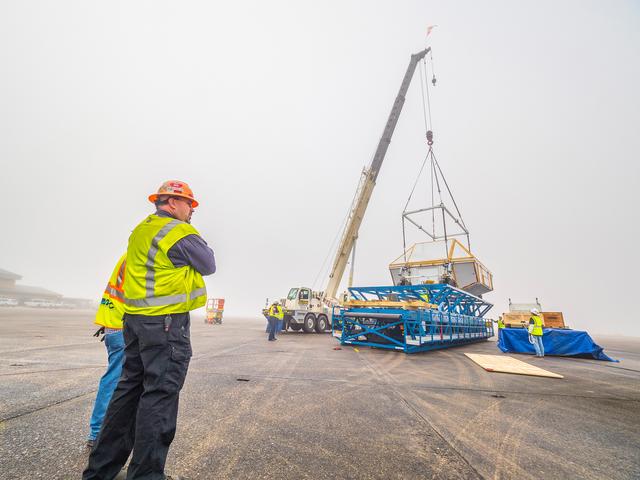 NASA's Super Guppy airplane arrives in New Orleans, Louisiana on Jan. 31, 2016. The Guppy will transport Orion's Artemis I crew module pressure vessel to Kennedy Space Center for final assembly. Part of Batch image transfer from Flickr.