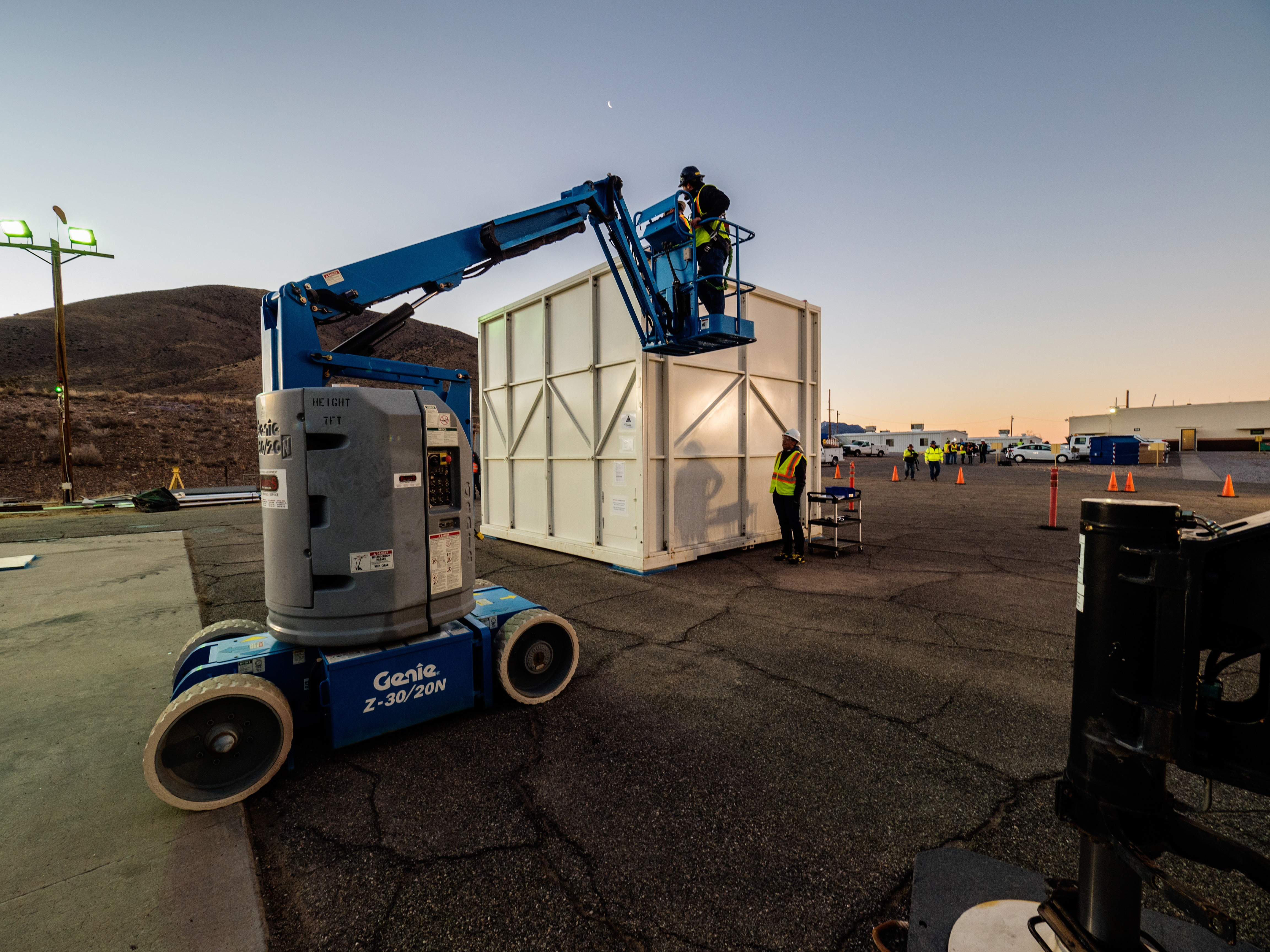 On Feb. 21, 2017 engineers successfully install ESA’s European Service Module Propulsion Qualification Module (PQM) at NASA’s White Sands Test Facility in New Mexico that was delivered by Airbus – ESA’s prime contractor for the Service Module. The module will be equipped with a total of 21 engines to support NASA’s Orion spacecraft: one U.S. Space Shuttle Orbital Maneuvering System (OMS) engine, eight auxiliary thrusters and 12 smaller thrusters produced by Airbus Safran Launchers in Germany. The all-steel PQM structure is used to test the propulsion systems on Orion, including “hot firing” of the OMS engine and thrusters.