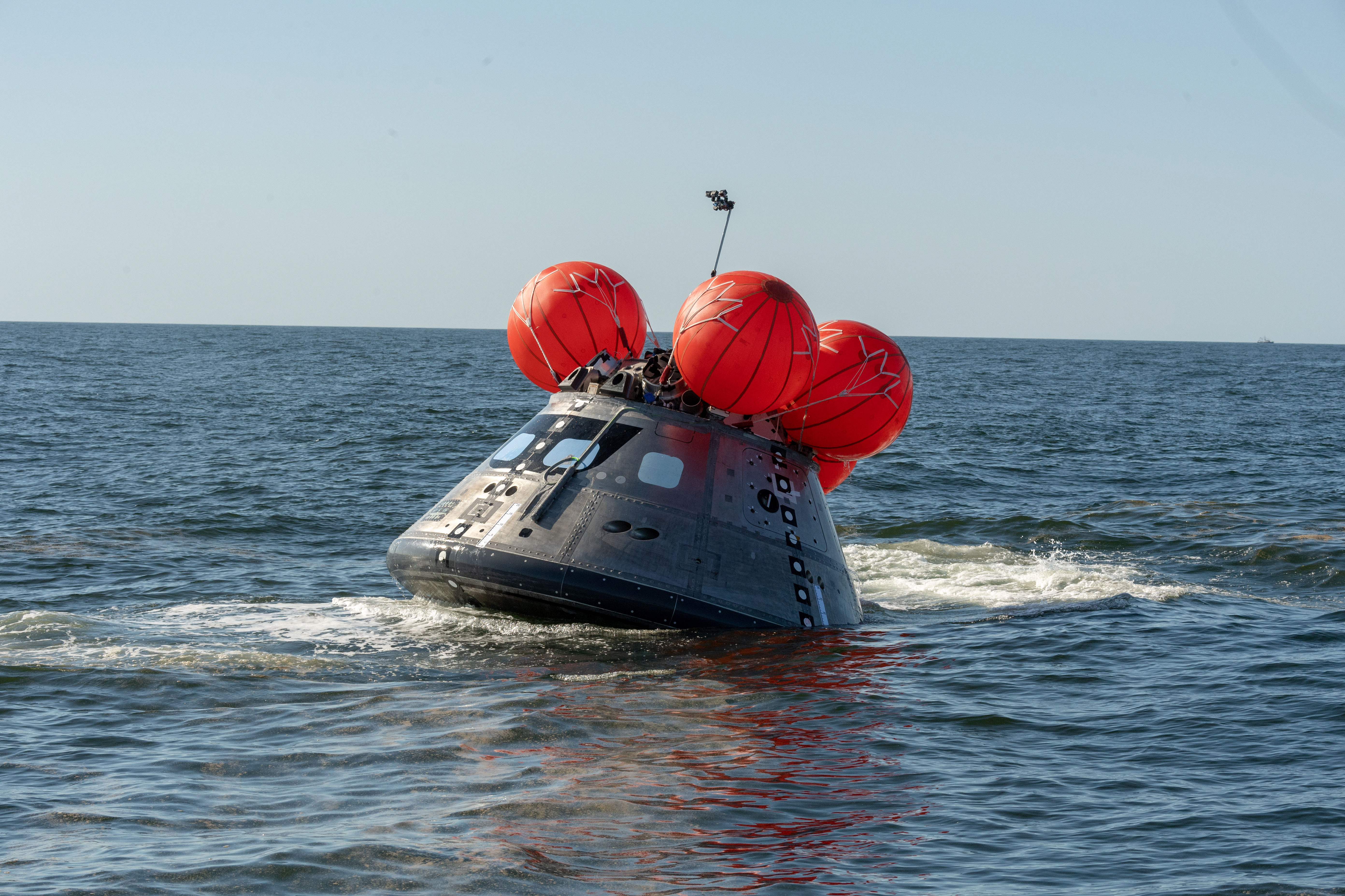 The Orion Crew Module Uprighting System (CMUS) and Neutral Buoyancy Laboratory team completed two successful sea tests off the coast of Galveston, Texas, Dec. 1-3, 2018. CMUS is designed to inflate five bags after the Orion spacecraft and its crew splash down after returning from deep space missions, enabling the capsule to upright itself. NASA partnered with United States Coast Guard and Air Force and Texas A&M Galveston teams to perform the tests operations.