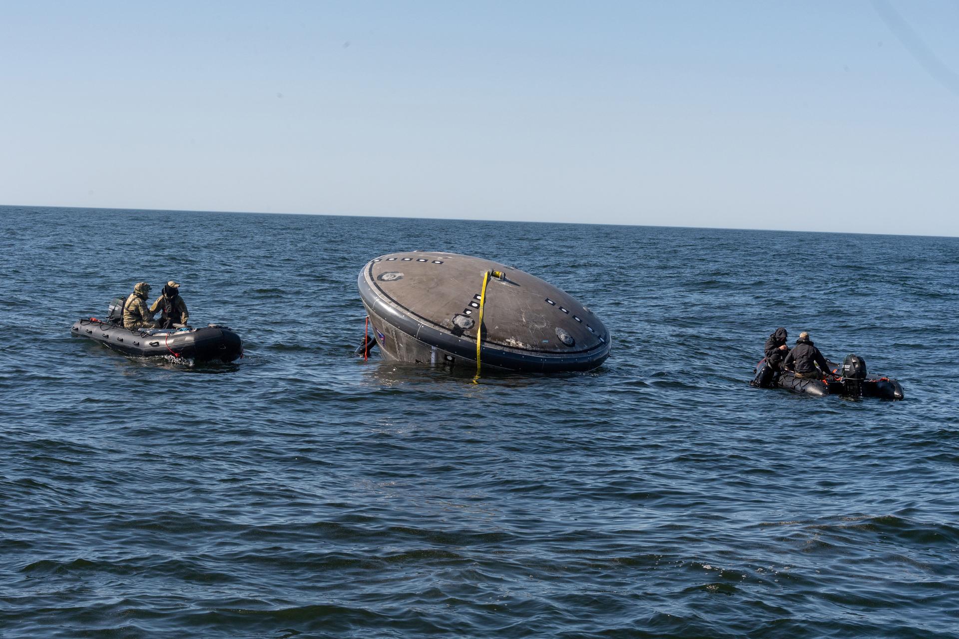 The Orion Crew Module Uprighting System (CMUS) and Neutral Buoyancy Laboratory team completed two successful sea tests off the coast of Galveston, Texas, Dec. 1-3, 2018. CMUS is designed to inflate five bags after the Orion spacecraft and its crew splash down after returning from deep space missions, enabling the capsule to upright itself. NASA partnered with United States Coast Guard and Air Force and Texas A&M Galveston teams to perform the tests operations.