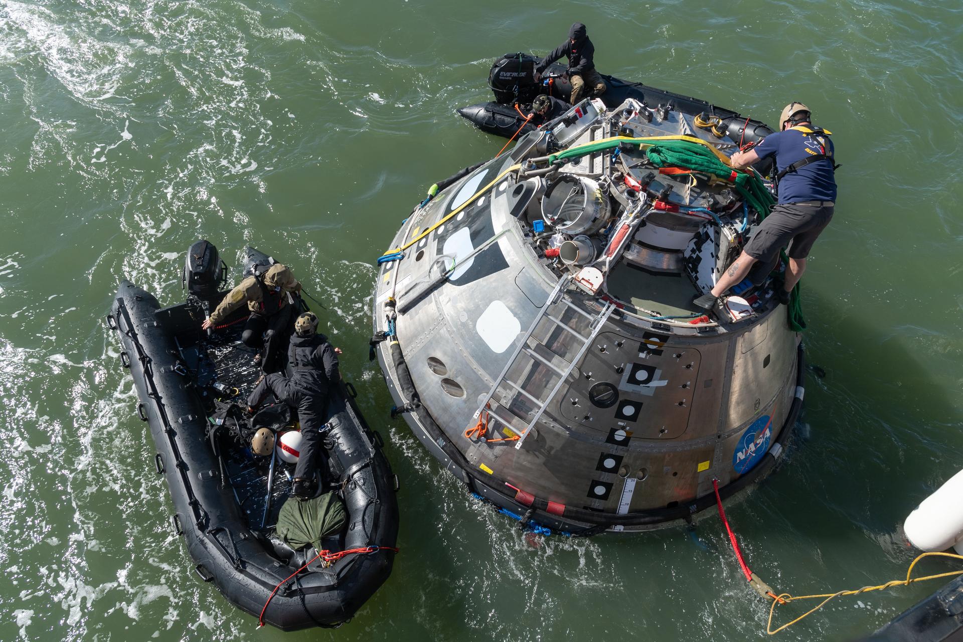 The Orion Crew Module Uprighting System (CMUS) and Neutral Buoyancy Laboratory team completed two successful sea tests off the coast of Galveston, Texas, Dec. 1-3, 2018. CMUS is designed to inflate five bags after the Orion spacecraft and its crew splash down after returning from deep space missions, enabling the capsule to upright itself. NASA partnered with United States Coast Guard and Air Force and Texas A&M Galveston teams to perform the tests operations.