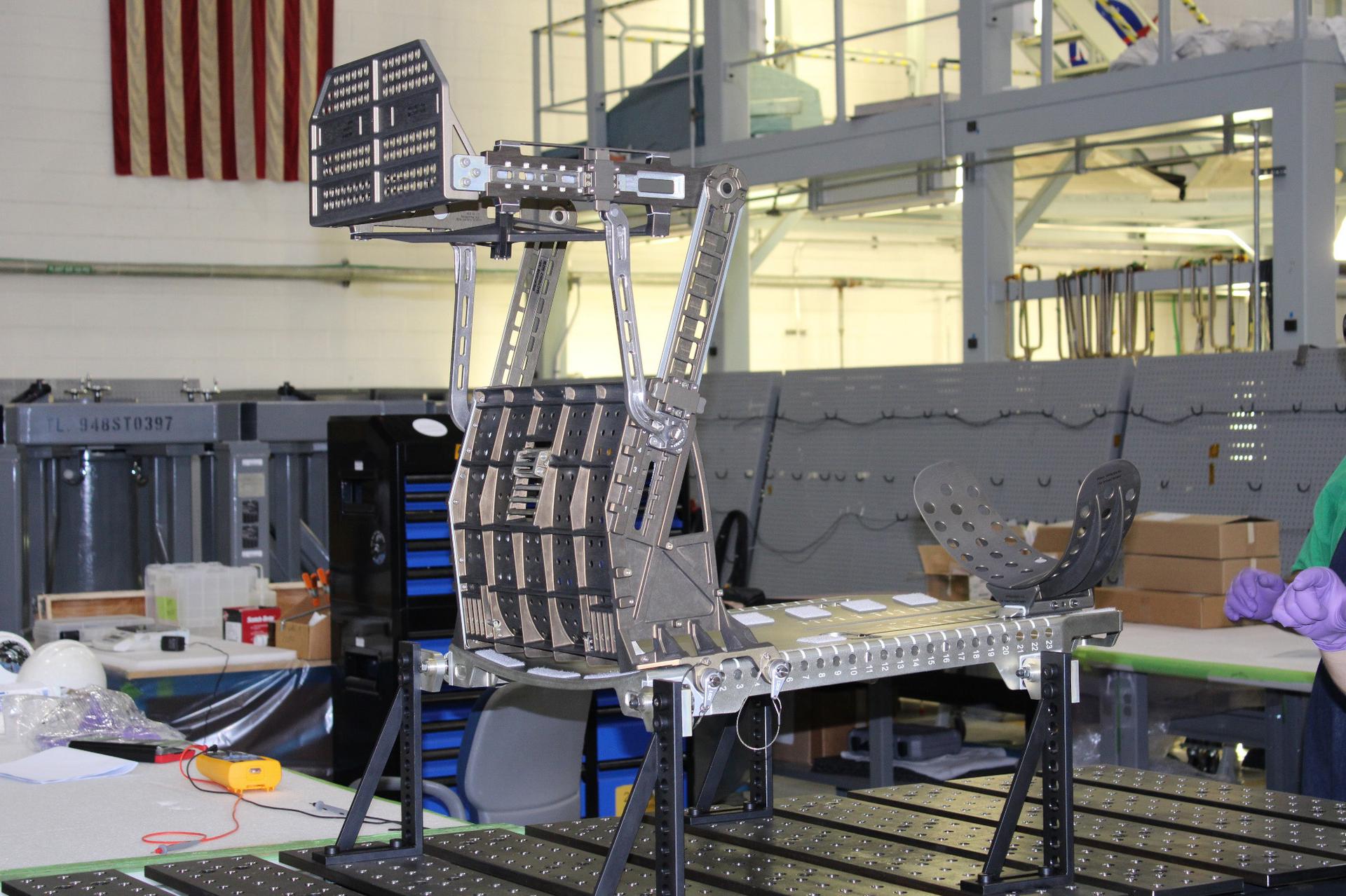 Lockheed Martin technicians at Michoud Assembly Facility in New Orleans complete the final assembly of the crew seat for the Artemis I flight on Sept. 23, 2020. The seat will hold a mass simulator and measure launch and landing loads during the flight which will see Orion travel 40,000 miles past the Moon. The seat will also be reused on Artemis II, Orion's first crewed flight.