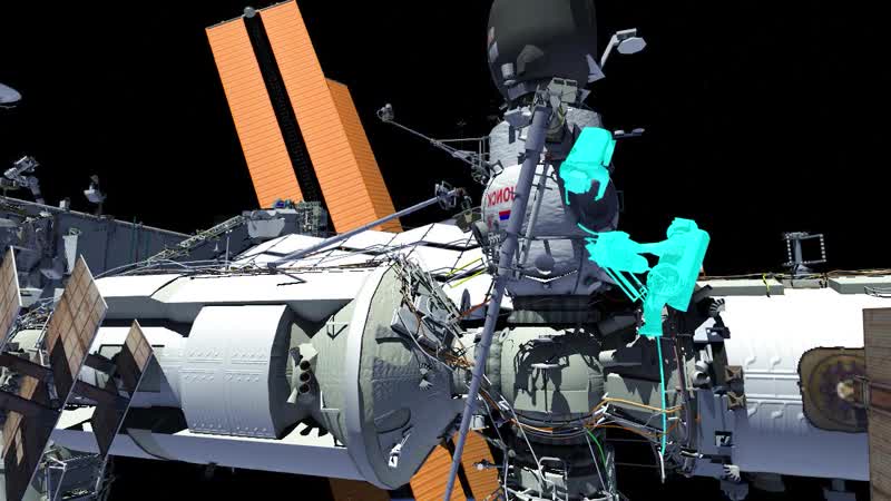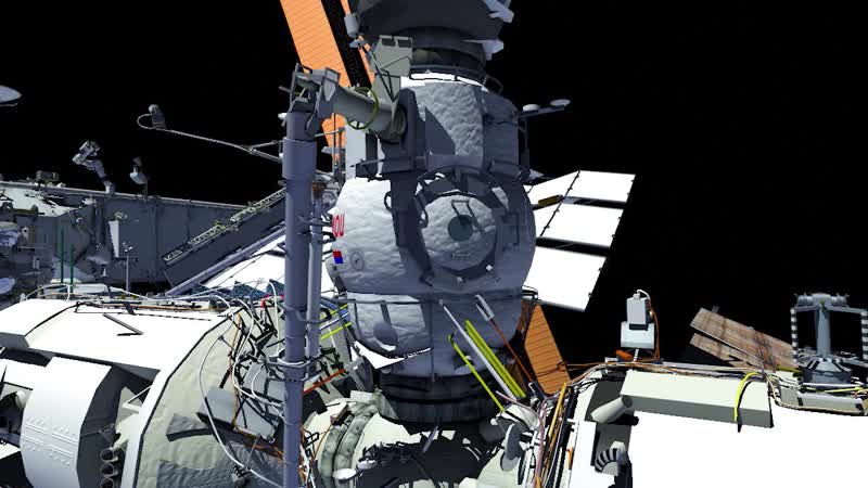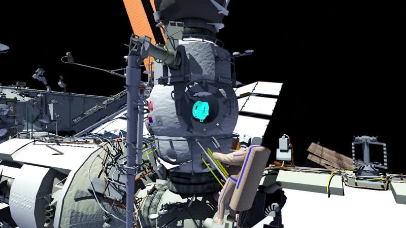 This computer-generated animation is a depiction of a scheduled spacewalk by Roscosmos cosmonauts Sergey Prokopyev and Dmitri Petelin outside the International Space Station to remove experiment hardware and install communications hardware. The spacewalk, scheduled for June 22nd, will be the seventh for Prokopyev and the fifth for Petelin, and the 266th spacewalk in support of station maintenance and upgrades.