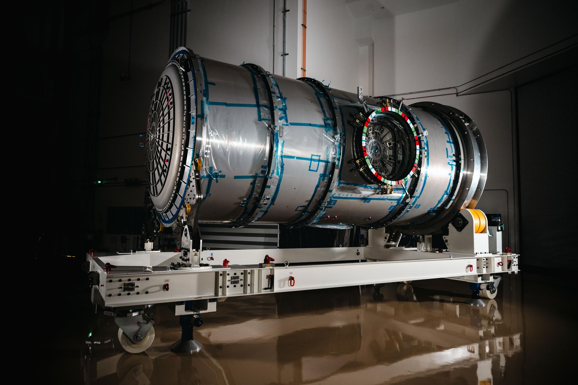 Gateway’s HALO (Habitation and Logistics Outpost) at Northrop Grumman’s facility in Gilbert, Arizona, on April 4, 2025, shortly after its arrival from Thales Alenia Space in Turin, Italy.