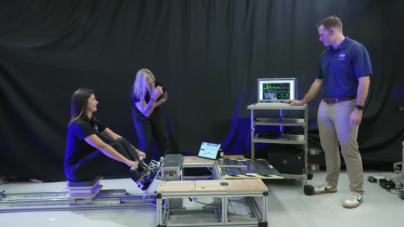 Broll footage of the team at NASA’s Johnson Space Center in Houston performing testing and evaluation of the Orion flywheel exercise device.