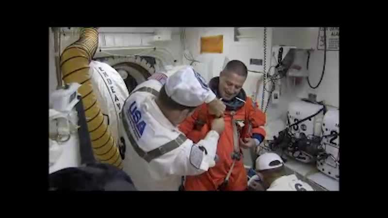 The STS-130 astronauts take their seats aboard space shuttle Endeavour and strap in for launch.