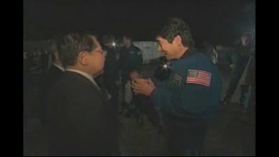 After landing on Runway 15 of the Shuttle Landing Facility at NASA's Kennedy Space Center in Florida, the STS-123 astronauts exited Endeavour and took a look at the shuttle that had carried them safely to space and back. Touchdown came at 8:39 p.m. EDT on Mar. 26, 2008. Endeavour's 16-day flight was the longest shuttle mission to the International Space Station and included a record five spacewalks. The shuttle's seven astronauts worked with the three-member station crew and ground teams around the world to install the first section of the Japan Aerospace Exploration Agency's Kibo laboratory and the Canadian Space Agency's two-armed robotic system, known as Dextre.