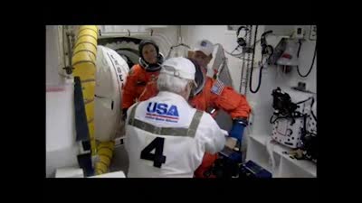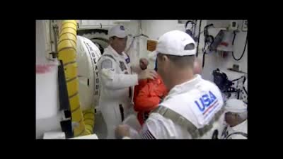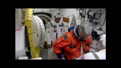 The STS-134 astronauts take their seats aboard space shuttle Endeavour as the countdown continues toward liftoff. Endeavour began its final flight, the STS-134 mission, to the International Space Station on time at 8:56 a.m. EDT on May 16. Endeavour and its six-member crew are embarking on a mission to deliver the Alpha Magnetic Spectrometer-2 (AMS), Express Logistics Carrier-3, a high-pressure gas tank and additional spare parts for the Dextre robotic helper to the space station. Endeavour's first launch attempt on April 29 was scrubbed because of an issue associated with a faulty power distribution box called the aft load control assembly-2 (ALCA-2). For more information visit, www.nasa.gov_mission_pages_shuttle_shuttlemissions_sts134_index.html.