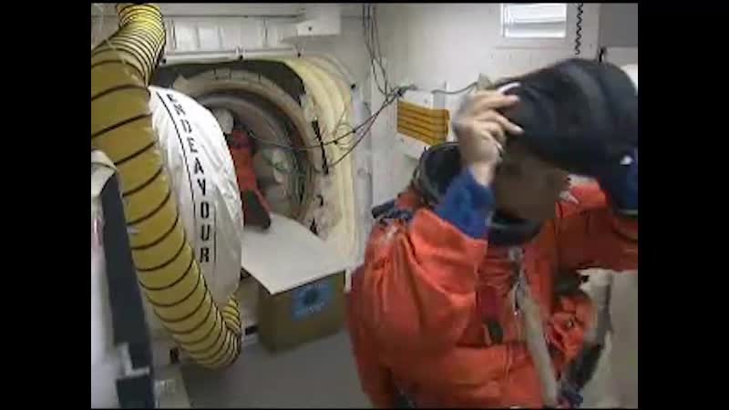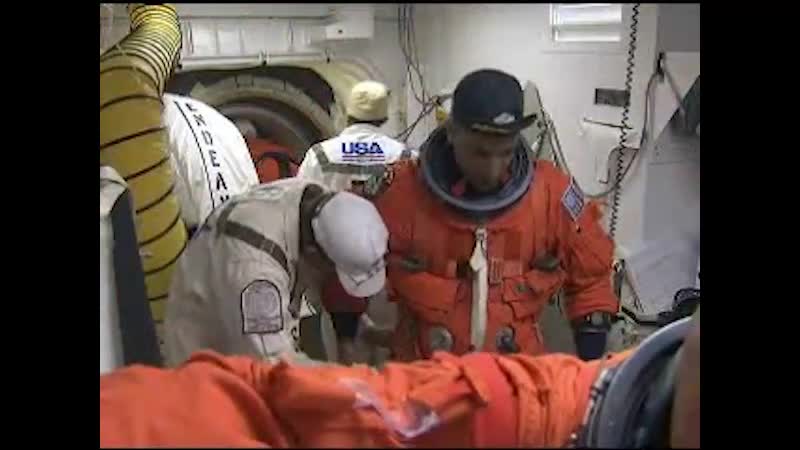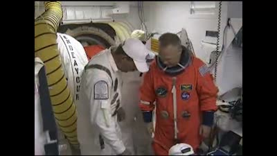The STS-127 crew is helped by NASA's Closeout Crew to get safely secured inside space shuttle Endeavour. Endeavour is set to start a 16-day mission that will feature five spacewalks and complete construction of the Japan Aerospace Exploration Agency's Kibo laboratory.