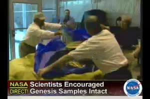 Scientists analyzing solar wind samples returned by the Genesis mission are getting a welcome boost to their spirits. It appears that several of the most important samples survived the hard landing the return capsule experienced Sept. 8 in the Utah desert. At least two of the four segments that collected oxygen isotopes are still in place. From these isotopes, scientists hope to learn more about the role oxygen played in the birth of our solar system, the mission's main objective. Scientists' second priority is to study nitrogen isotopes, which could help explain how atmospheres formed around the planets in our solar system. Fortunately, the gold foil they'll use in that analysis was found intact. Hexagonal wafers and foils on the canister's lid gathered other samples during the mission, and a large portion appears to be recoverable. The spacecraft's robust design is credited with saving so much of the mission's science.