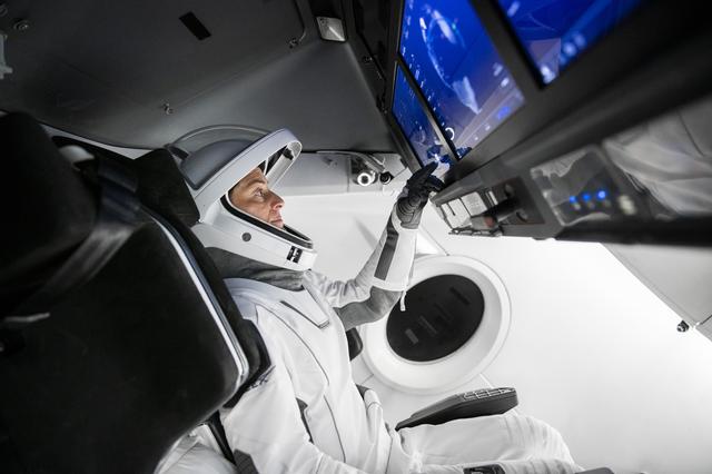 NASA Astronaut Nicole Mann becomes familiar with the spacecraft and its displays during a training at SpaceX in Hawthorne, California.