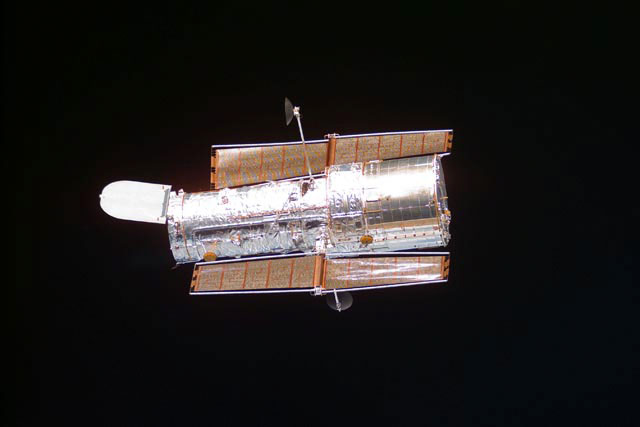 S103-E-5454 (25 December 1999) --- Moments after the freeing of the Hubble Space Telescope (HST) by Discovery's remote manipulator system (RMS), astronauts in the shuttle's cabin took a series of electronic stills of the giant observatory.