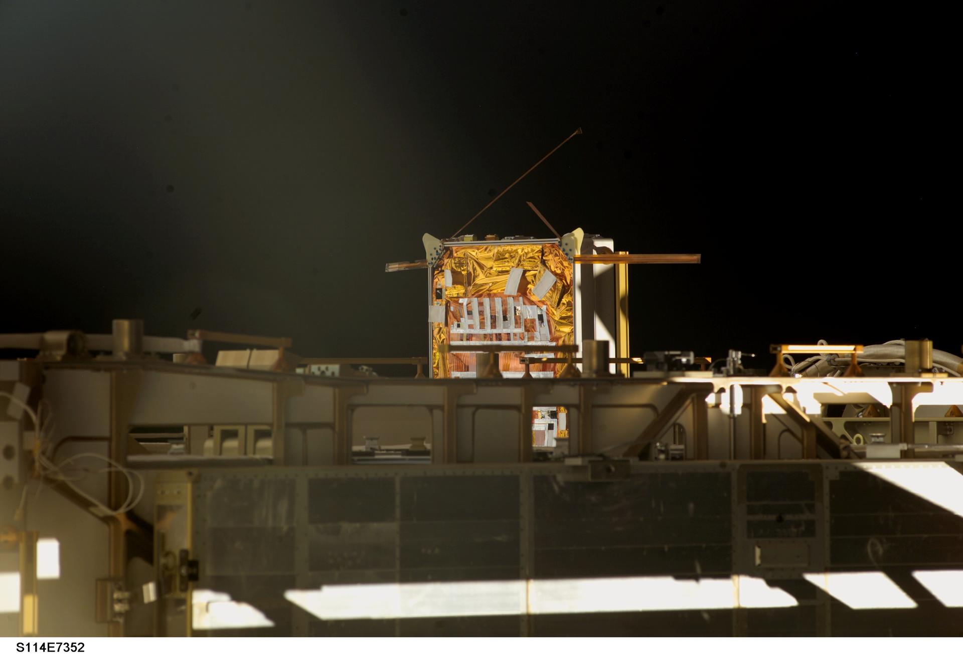 s114e7352 (8/6/2005) --- A view of the Materials International Space Station Experiment (MISSE) 5 Passive Experiment Containter (PEC) mounted on the P6 Truss during one of the STS-114 missions Extravehicular Activities (EVAs). The Materials International Space Station Experiment-5 (MISSE-5) was an external payload that flew on-board the ISS from August 2005 until September 2006. MISSE-5 provided an opportunity for researchers to test a wide range of samples in the Low Earth Orbit (LEO) environment.